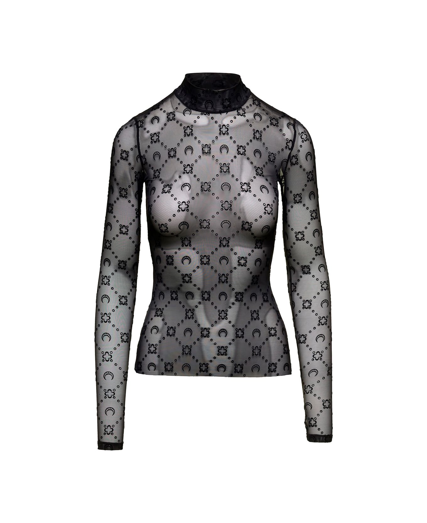 Black 'semi-transparent' Sweater With Flocked Monogram In Elastic Polyamide For Women