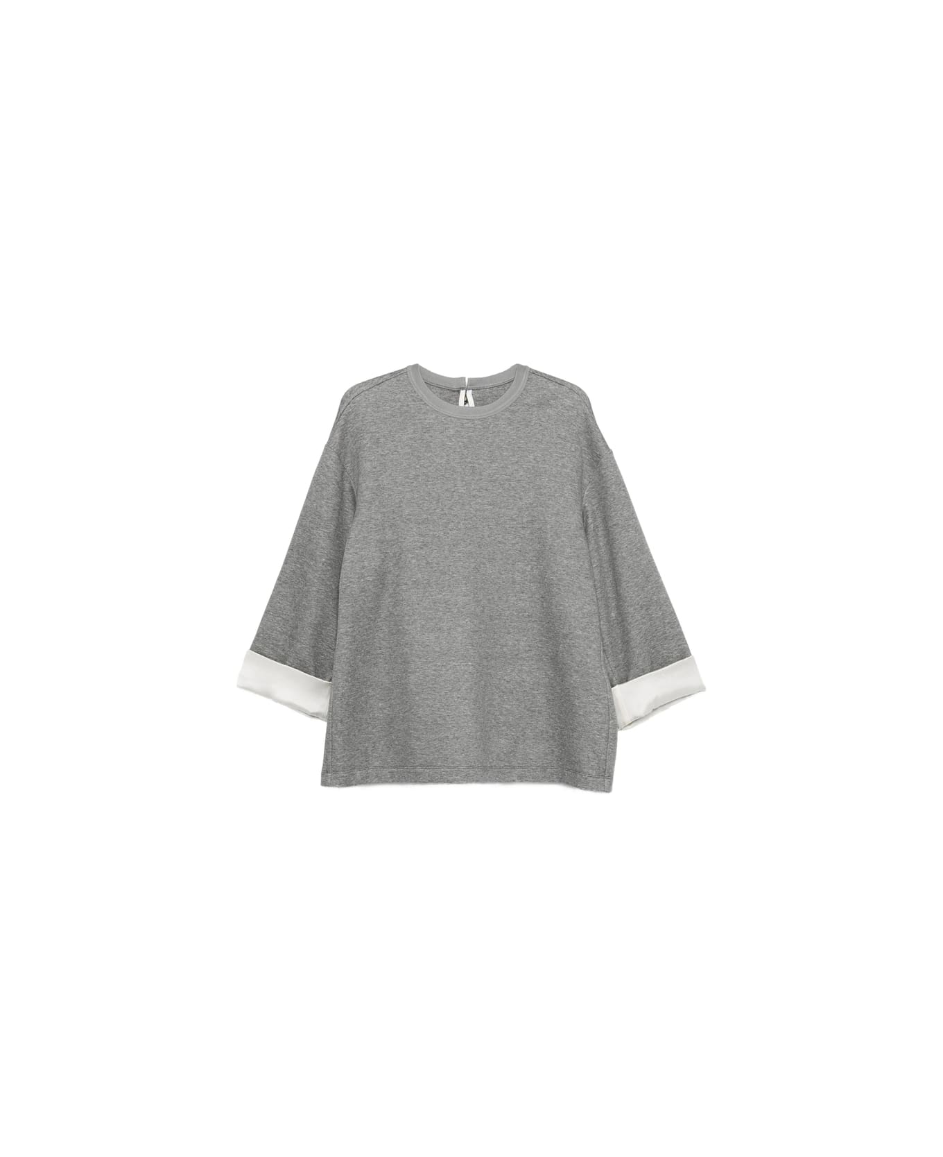 light grey round neck three-quarter sleeves contrasting cuffs silk