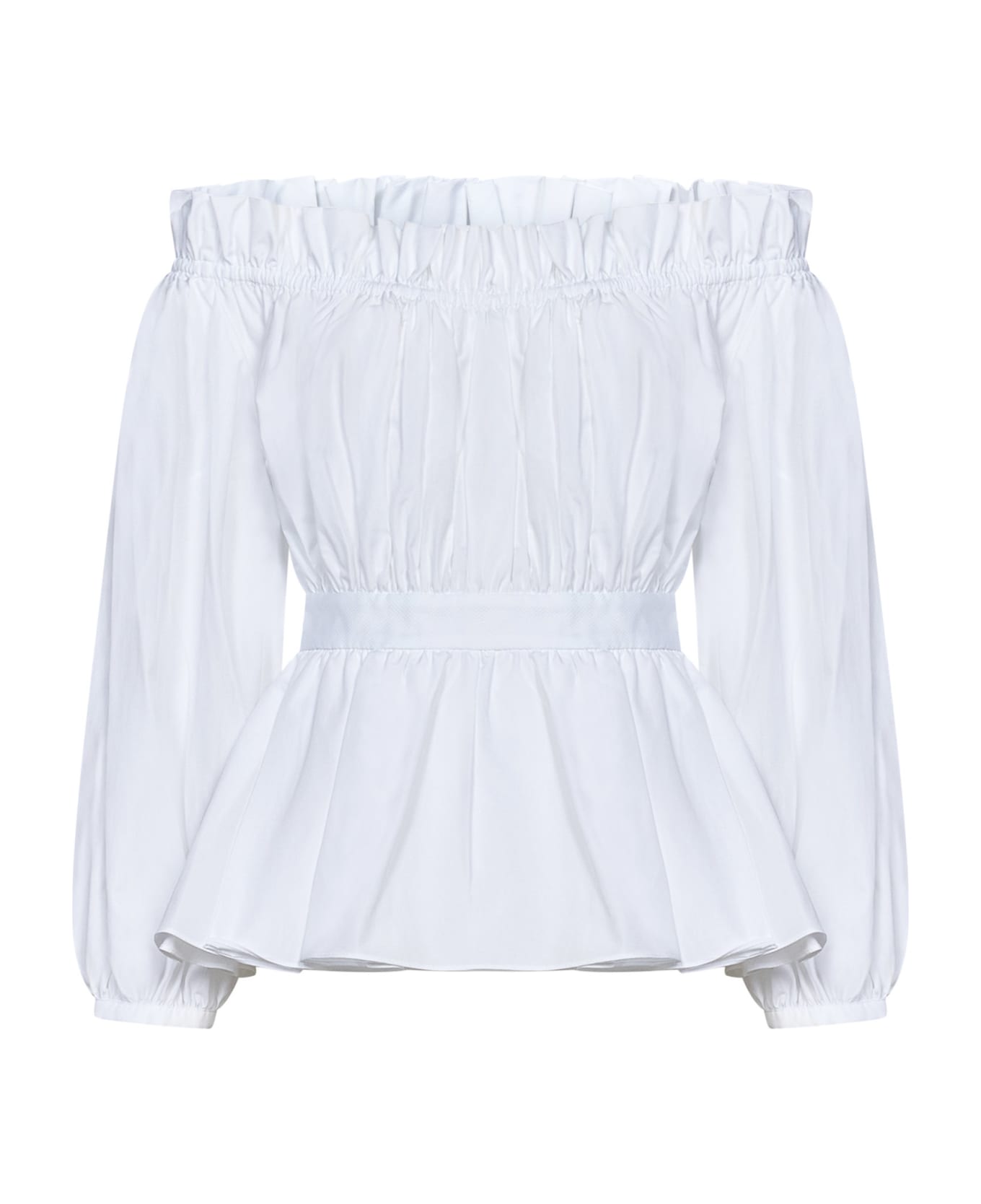 Off-the-shoulder, elasticated neckline; Long wide sleeves, button cuffs