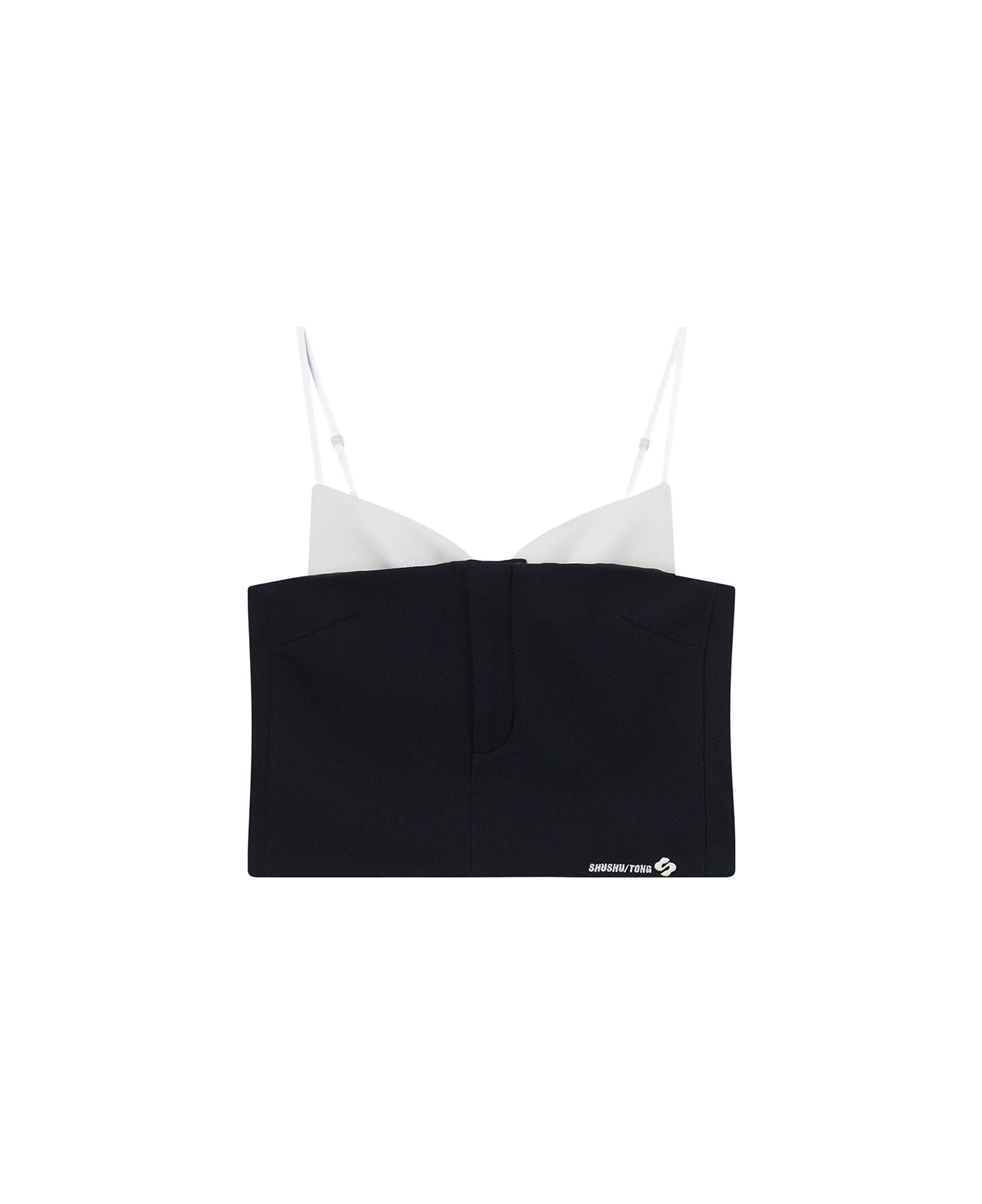 navy blue wool adjustable straps logo detail zip fastening