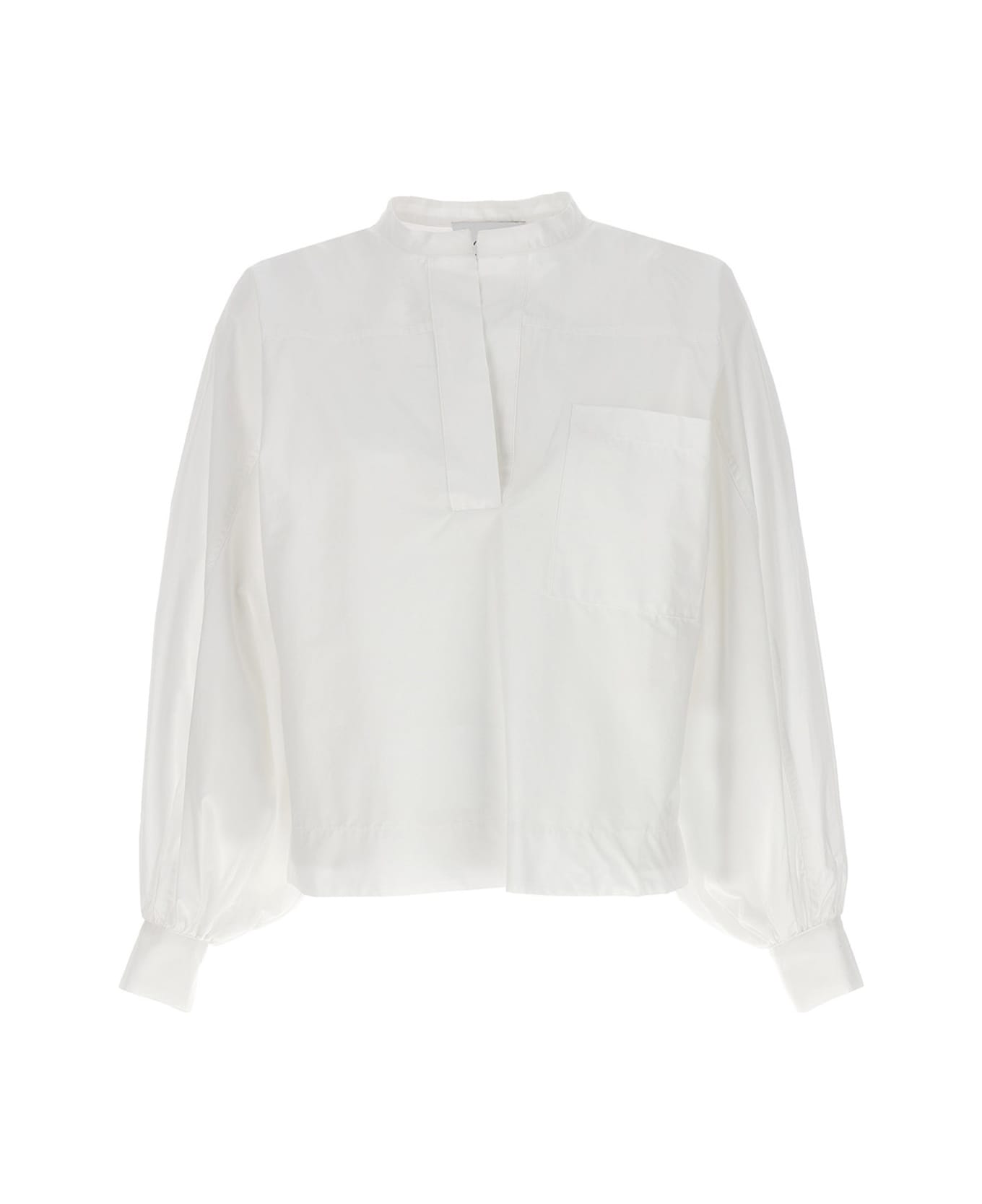 Cotton, V-neck bloshirt with long cuffed sleeves.
