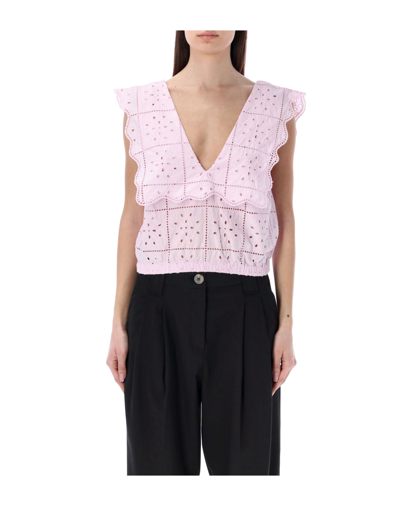 Cotton Broderie Anglaise Rhythm Collar Top By Ganni. Featuring: