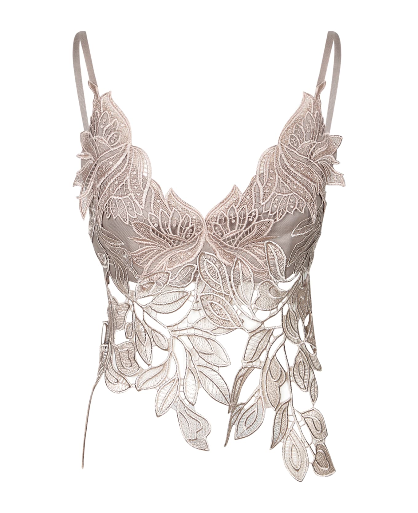 Embody natural elegance with this Alberta Ferretti top, featuring a sophisticated macramé weave forming botanical motifs. Ideal for special evenings, it pairs beautifully with high-waisted skirts or tailored trousers.
