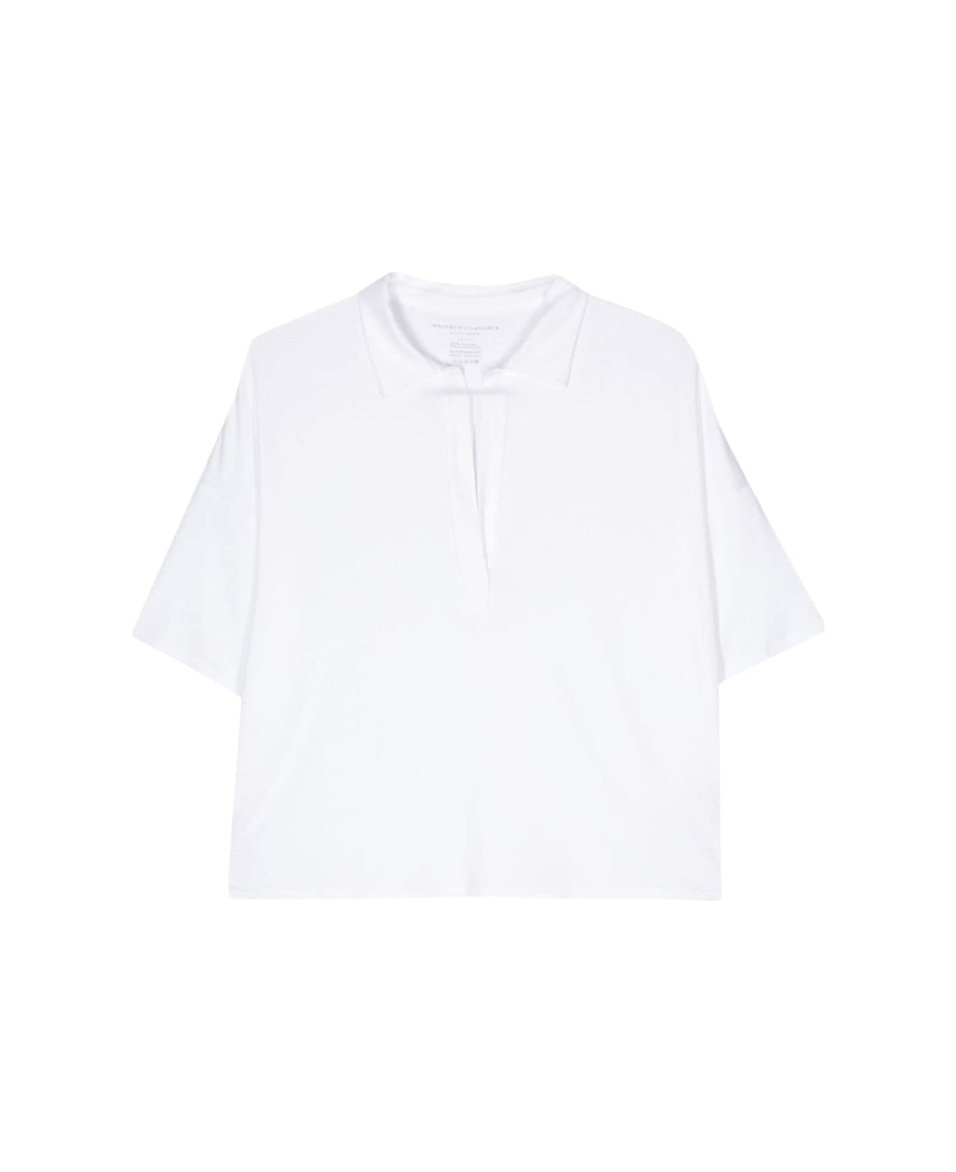 white jersey texture stretch-design polo collar short sleeves straight hem