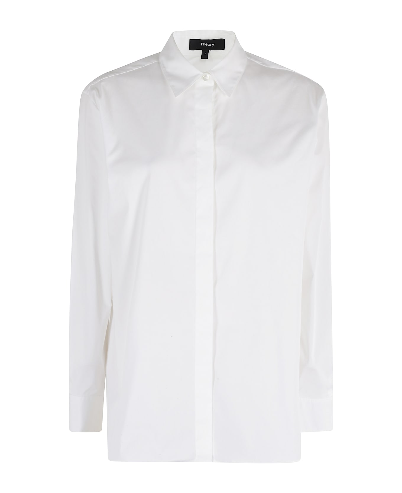 Shirt -Theory -White color -Oversized model -Long sleeve -Center button closure -Side slits -Classic collar