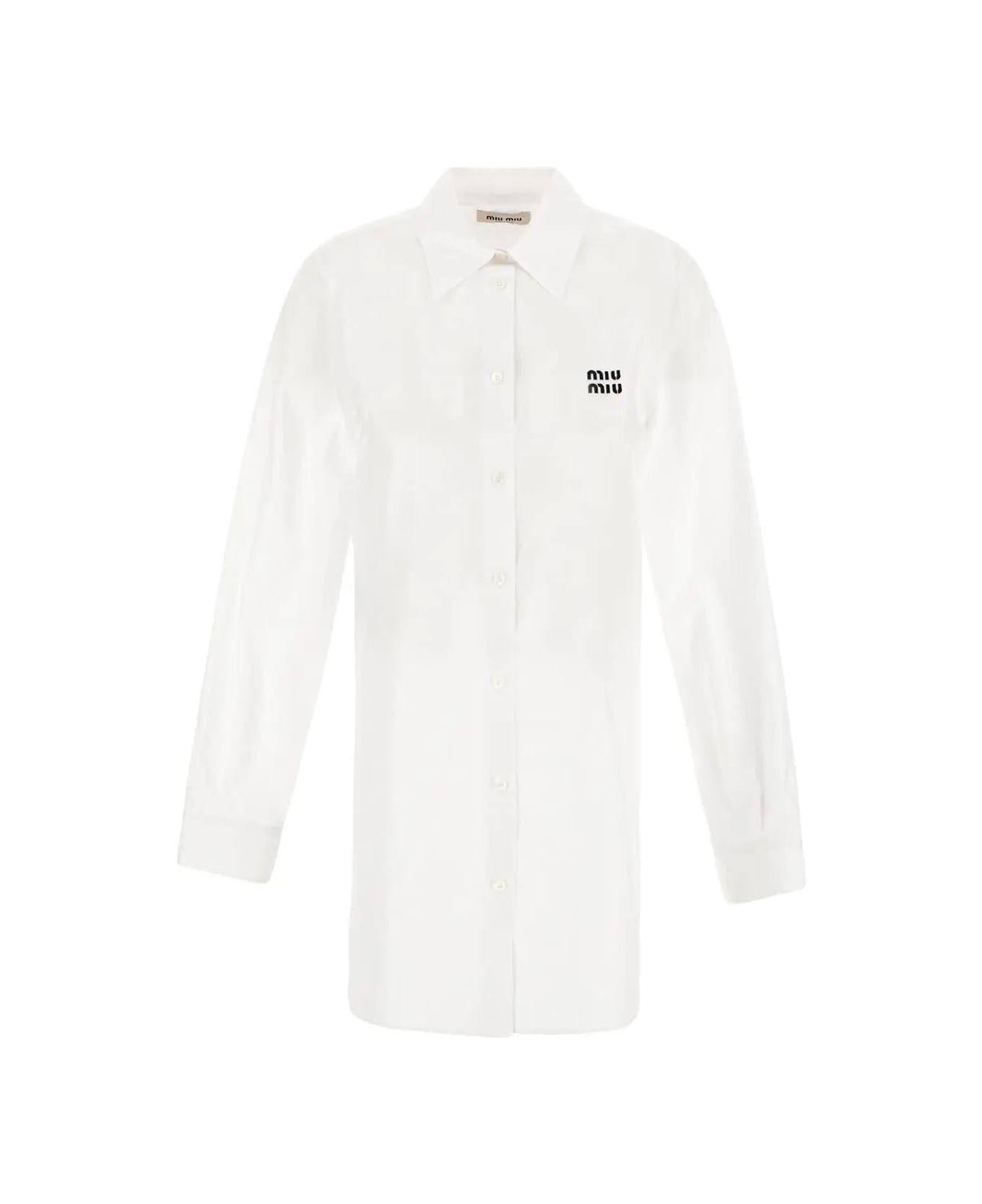 Miu Miu shirt in white cotton with long sleeves. The item is featured by buttons closure, pointed collar and embroidered logo on chest.