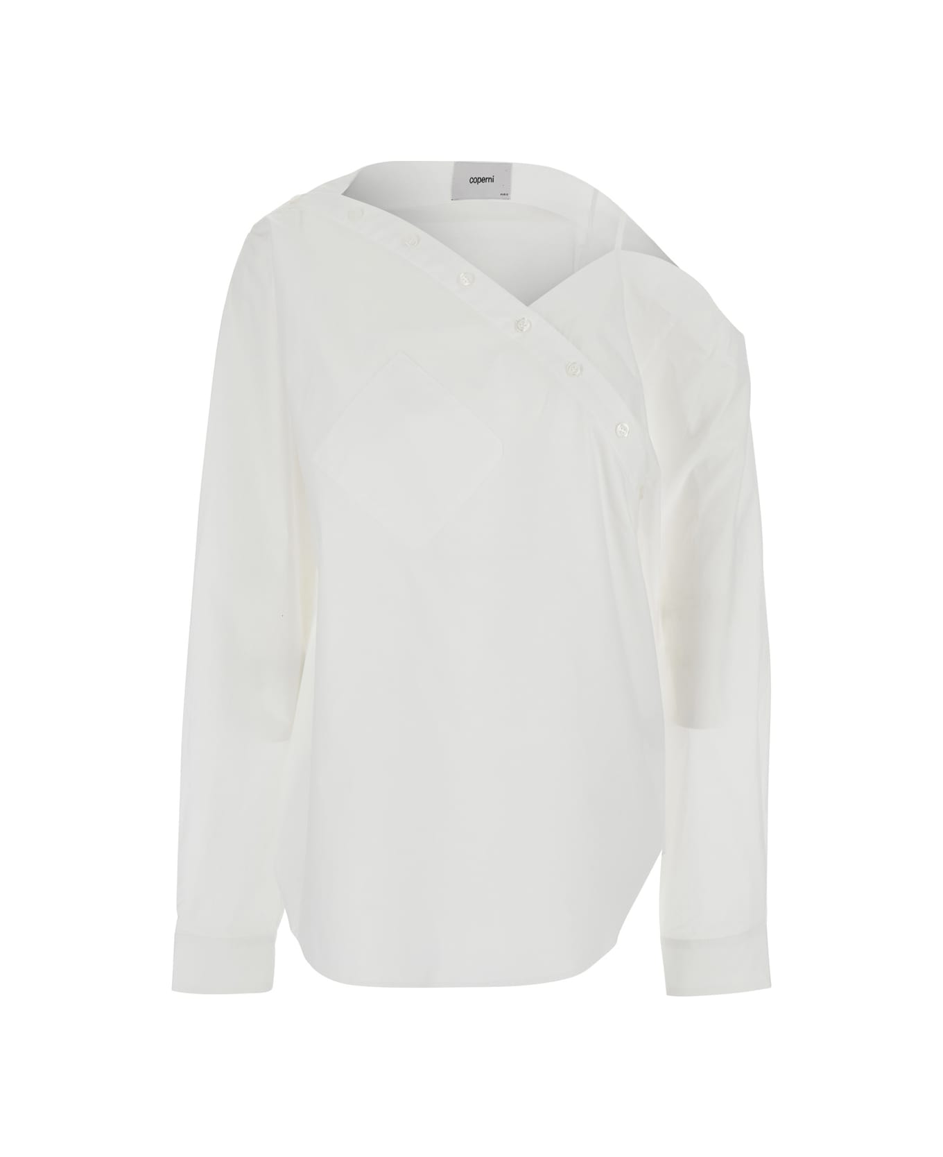 Shirt White Drain at the front Asymmetrical buttoning Long sleeves Chest patch pocket Buttoned cuffs Cotton Relaxed fit