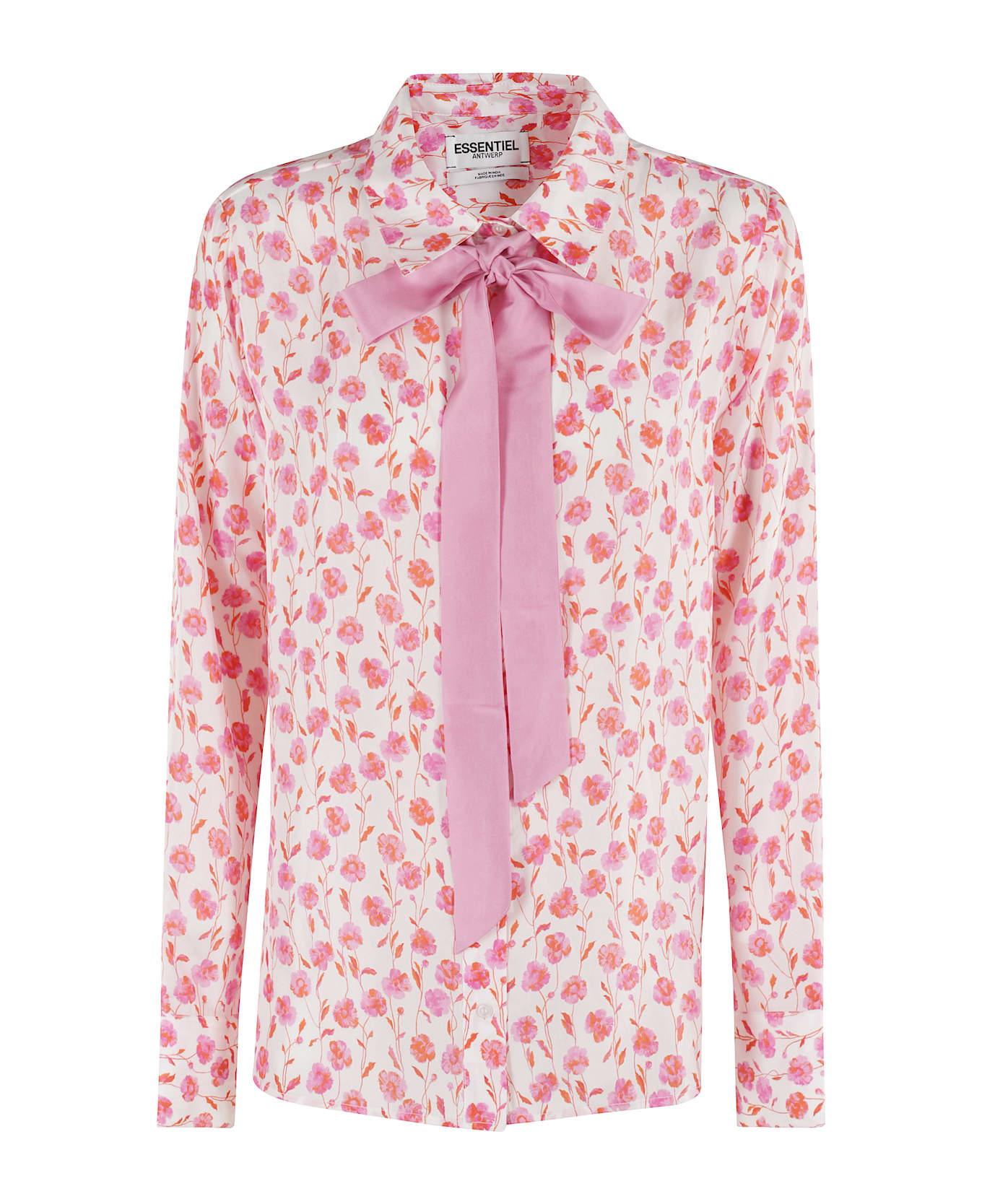 Hensley Shirt - Essentiel Antwerp - Ivory color - Printed silk fabric - Pointed collar with sash - Long sleeve with cuff and button - Front button closure - Fit fit