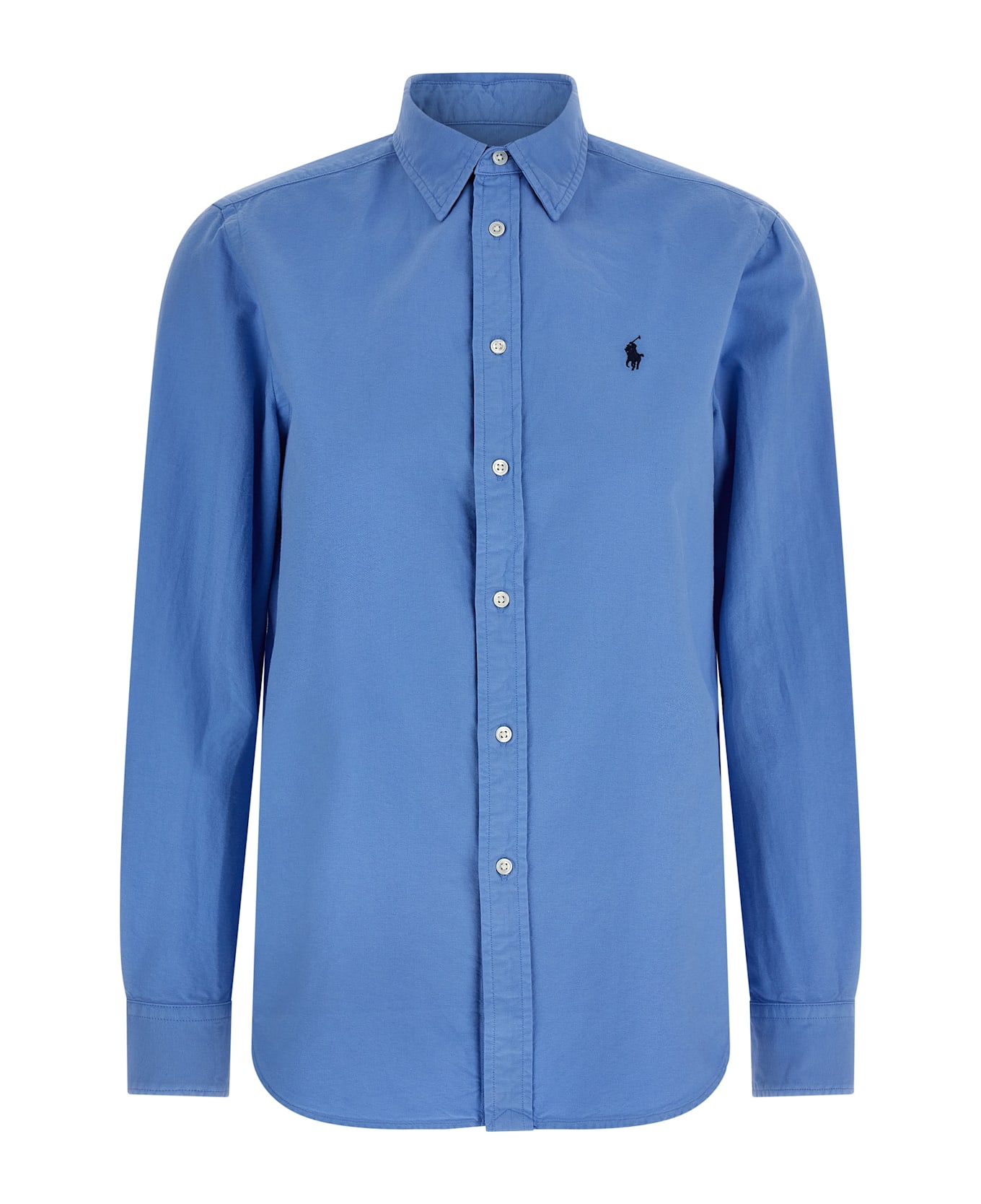 Oxford cotton shirt with front logo embroidery, button closure, long cuffed sleeves.
