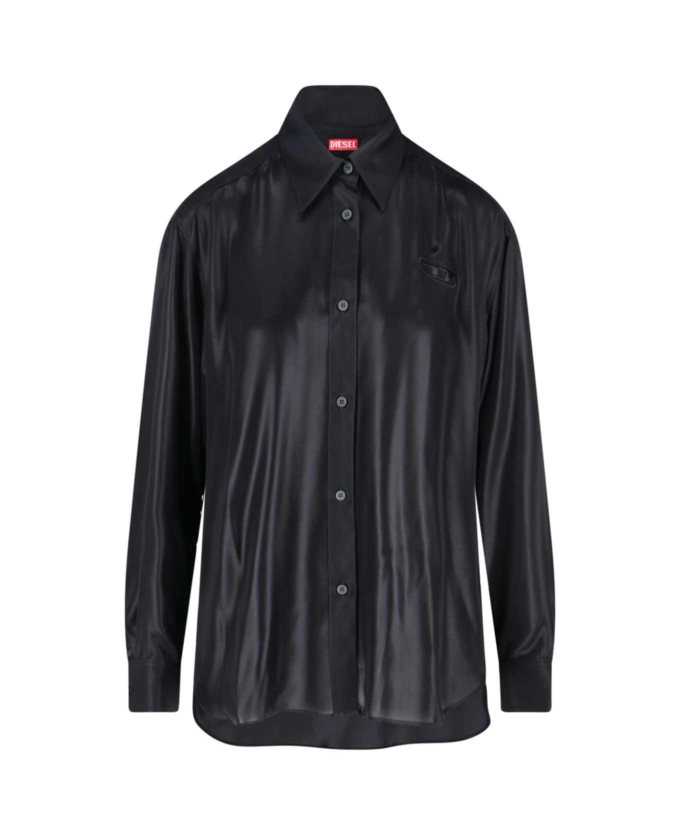 Diesel 'S-Simply-C-Wn-Q1' shirt in black laminated fabric with classic collar, long sleeves, button closure, tonal logo embroidery on the front, button cuffs, straight hem on the front, curved back. Composition: 100% Polyester