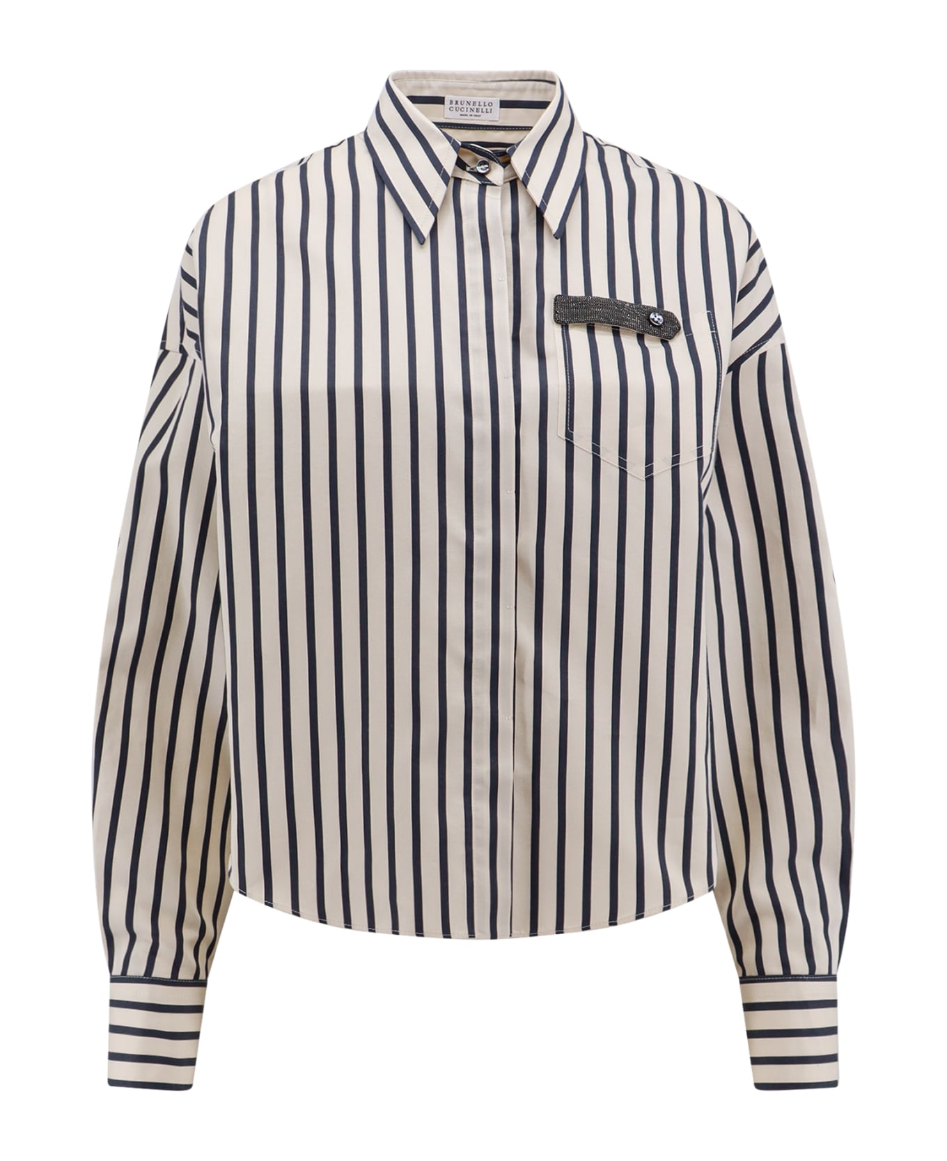 - Hidden Closure With Buttons - Pointed Collar - Monili Detail With Button - Made In Italy - 83% Cotton 17% Silk