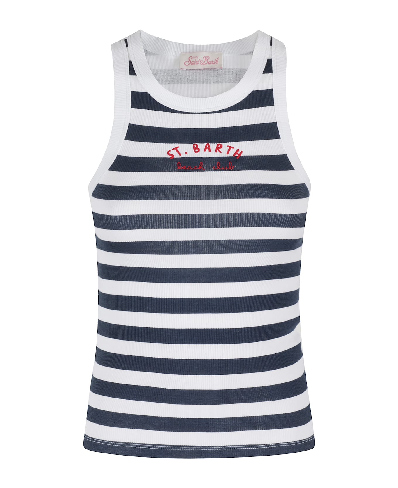 Ada tank top - MC2 Saint Barth - White and blue color - Ribbed cotton fabric with striped pattern - Crew neck - Contrasting embroidered logo lettering - Tight fit
