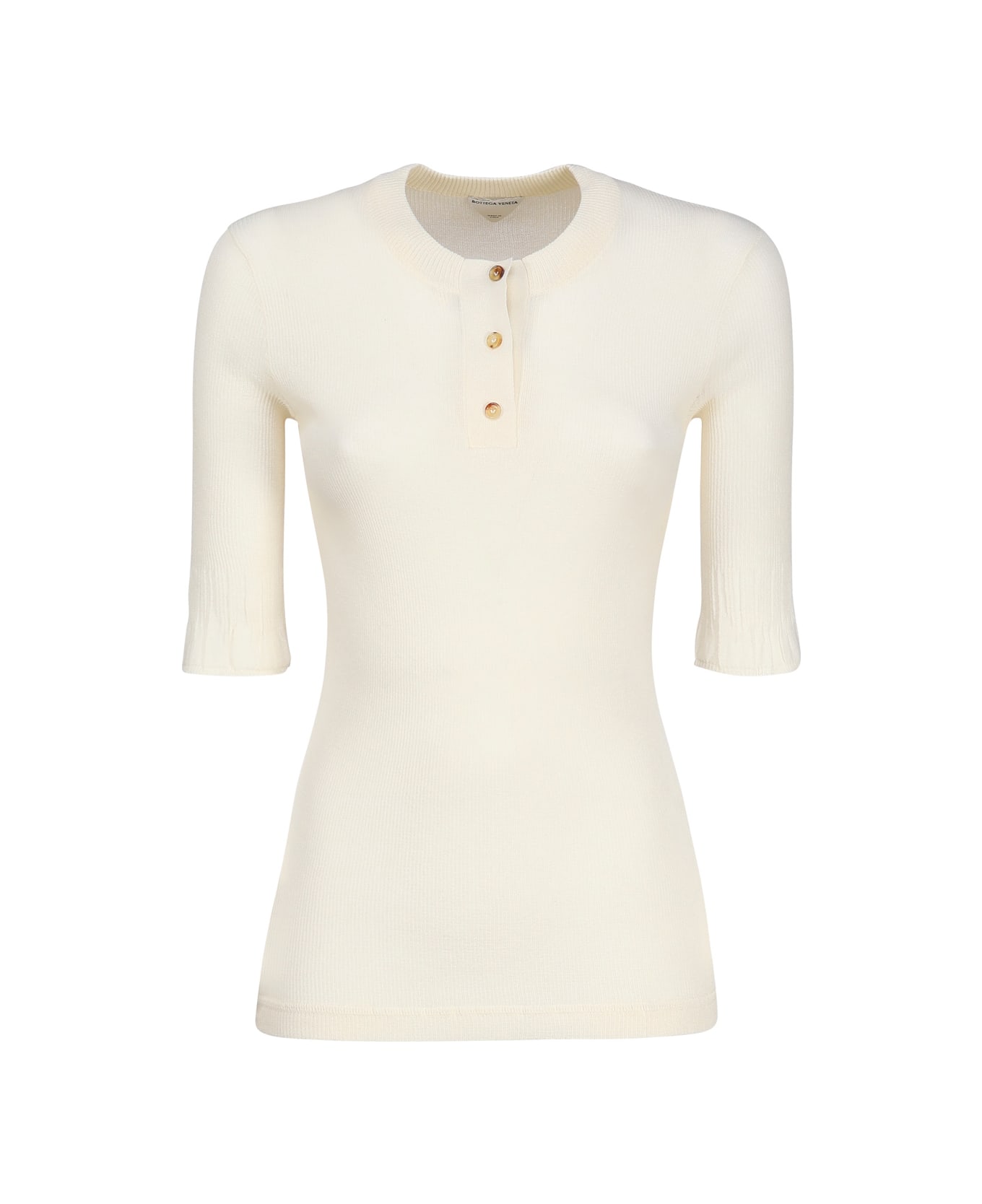Chalk Slim Fit Light Cotton Top from Bottega Veneta -Light cotton top -Button closure -Slim fit -Made in Italy -Colour: Chalk -82% Cotton, 18% Polyamide