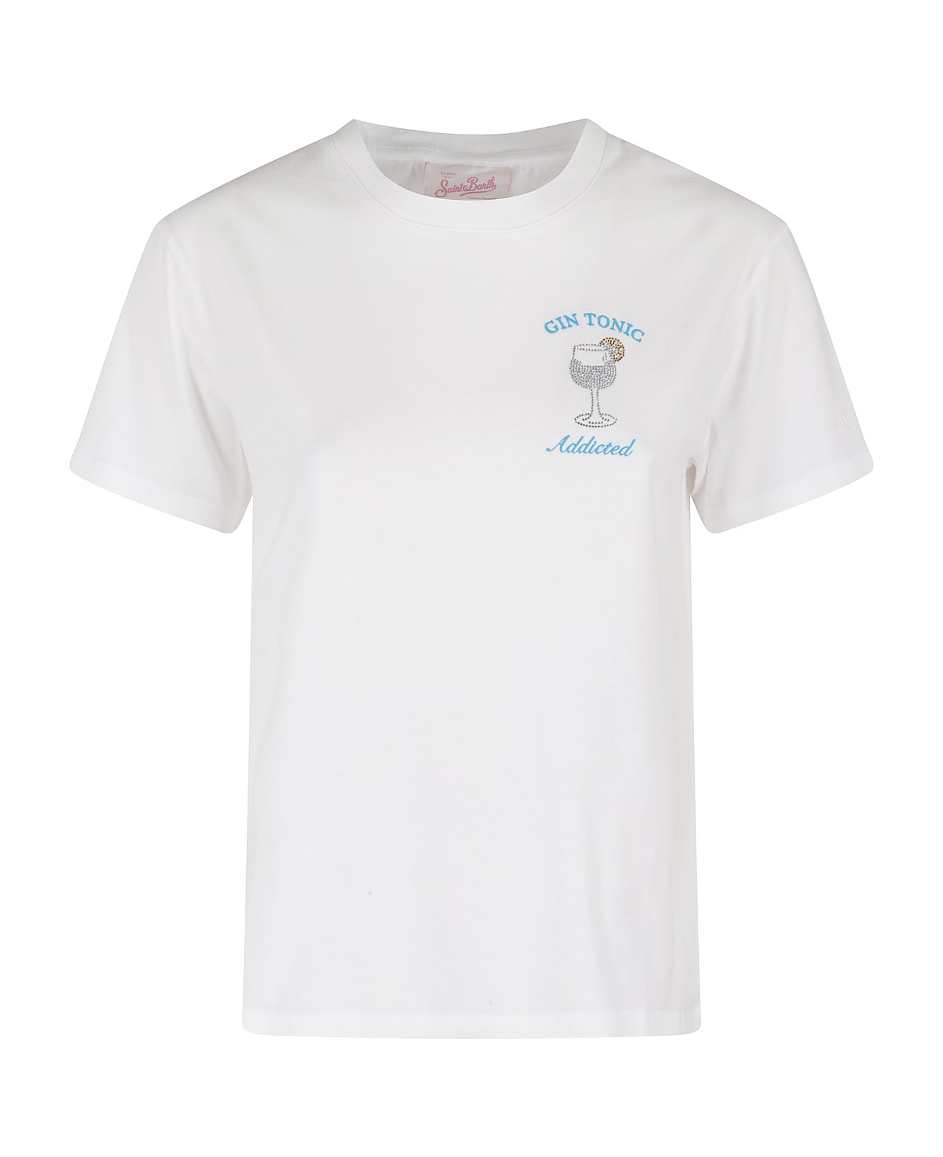 Emilie T-Shirt - MC2 Saint Barth - White color - Crew neck - Short sleeve - Contrast chest embroidery with rhinestones - Regular fit