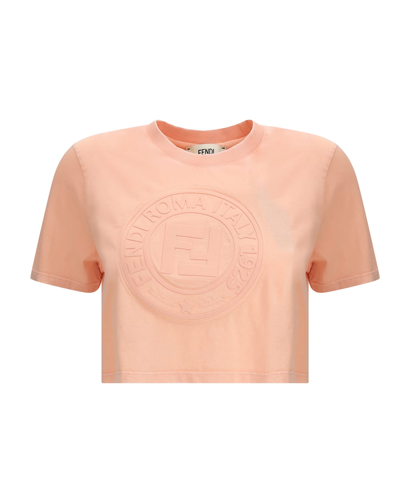 Fendi's cropped t-shirt is a contemporary style piece that combines simplicity and brand identity. made with a ribbed crew neck, it is embellished with the iconic fendi logo embossed on the front for an essential yet instantly recognizable look. Composition: 100% % Cotton