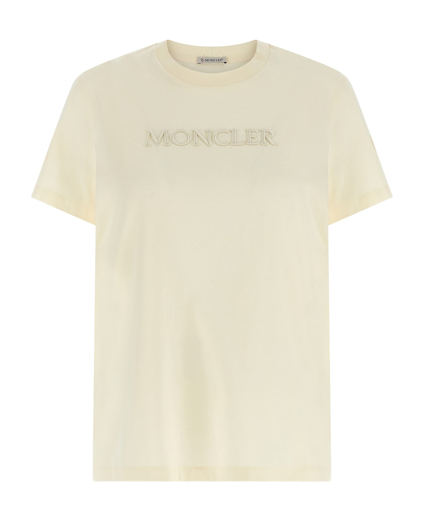 Cotton jersey T-shirt with tone-on-tone 3D logo embroidery on the front, crew neck, short sleeves with felt logo patch appliqué.