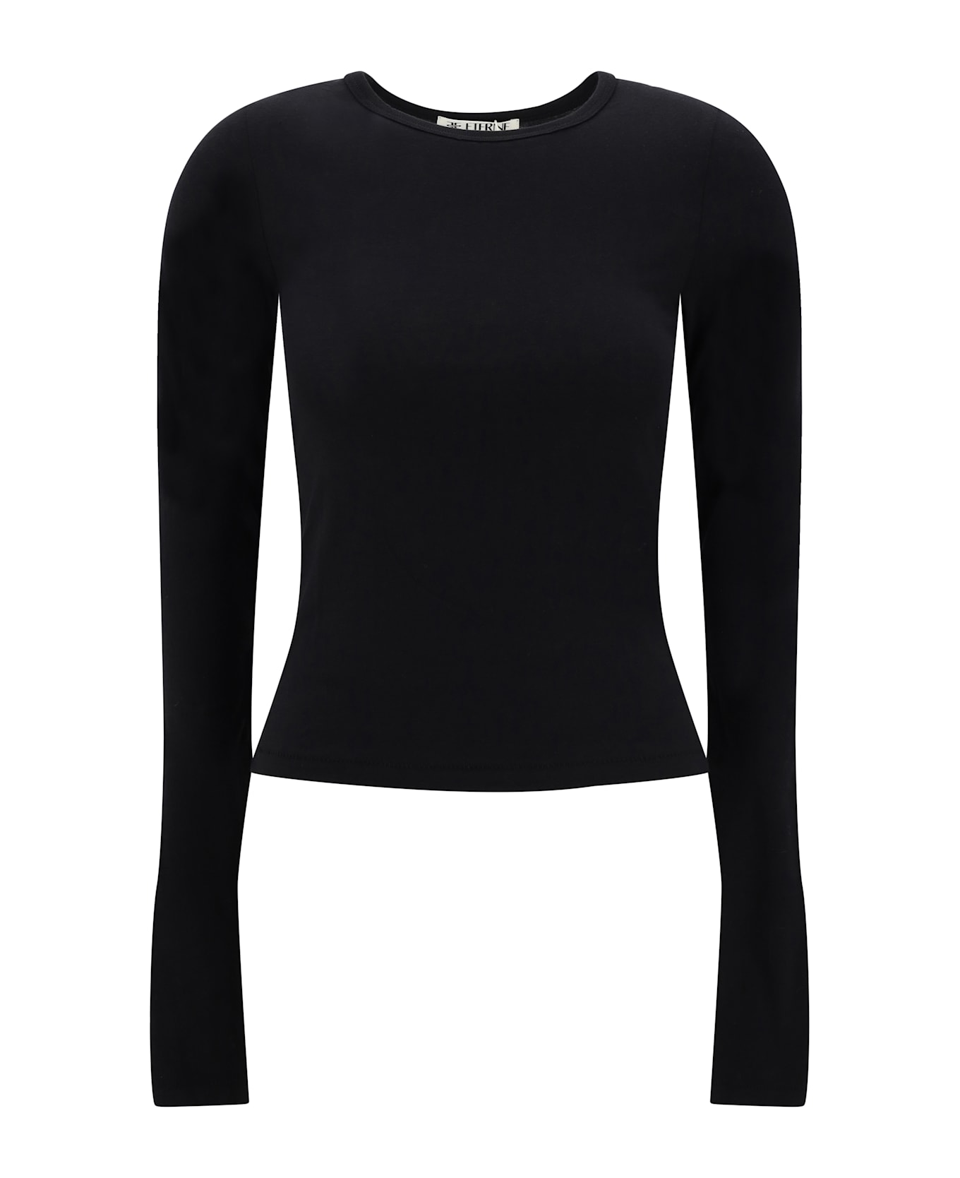 Éterne's cotton long-sleeve top is an essential and refined piece, ideal for a minimalist and sophisticated look. the ribbed crew neck and cuffs give the design a touch of detail and a comfortable fit. the fitted pattern accentuates the silhouette, making it perfect as a base for elegant looks or to be worn alone in a simple yet stylish way.