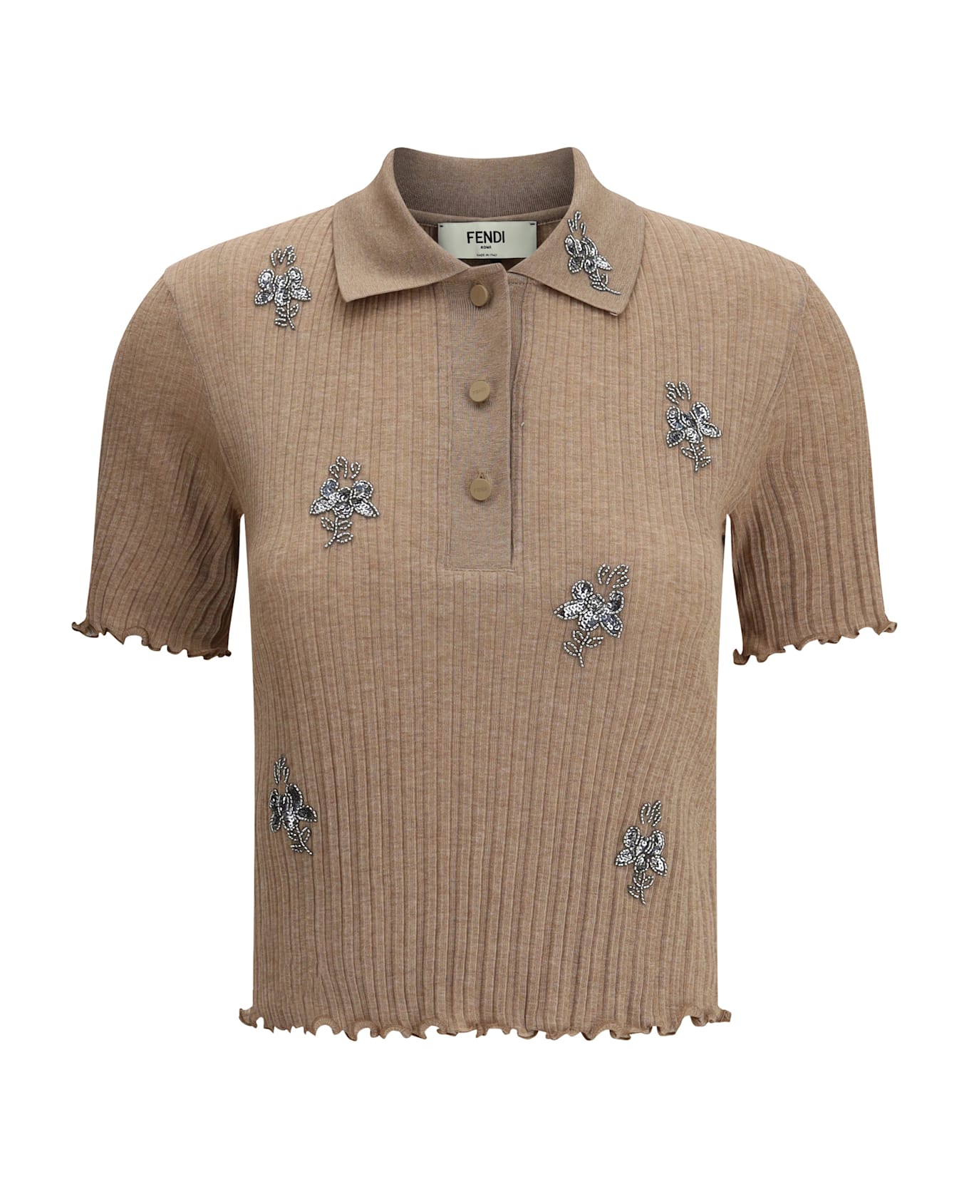 Fendi's polo t-shirt reinterprets a classic with sophisticated and feminine details. crafted with a ribbed collar and three-button front closure, it is embellished with a delicate lettuce hem and embellished with beaded and sequin appliqués for a bright and sophisticated touch. Composition: 100% % Cotton