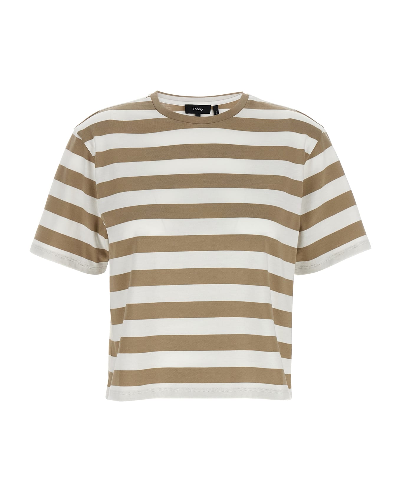 Pima striped organic cotton jersey T-shirt, slightly crop style, crew neck and short sleeves.