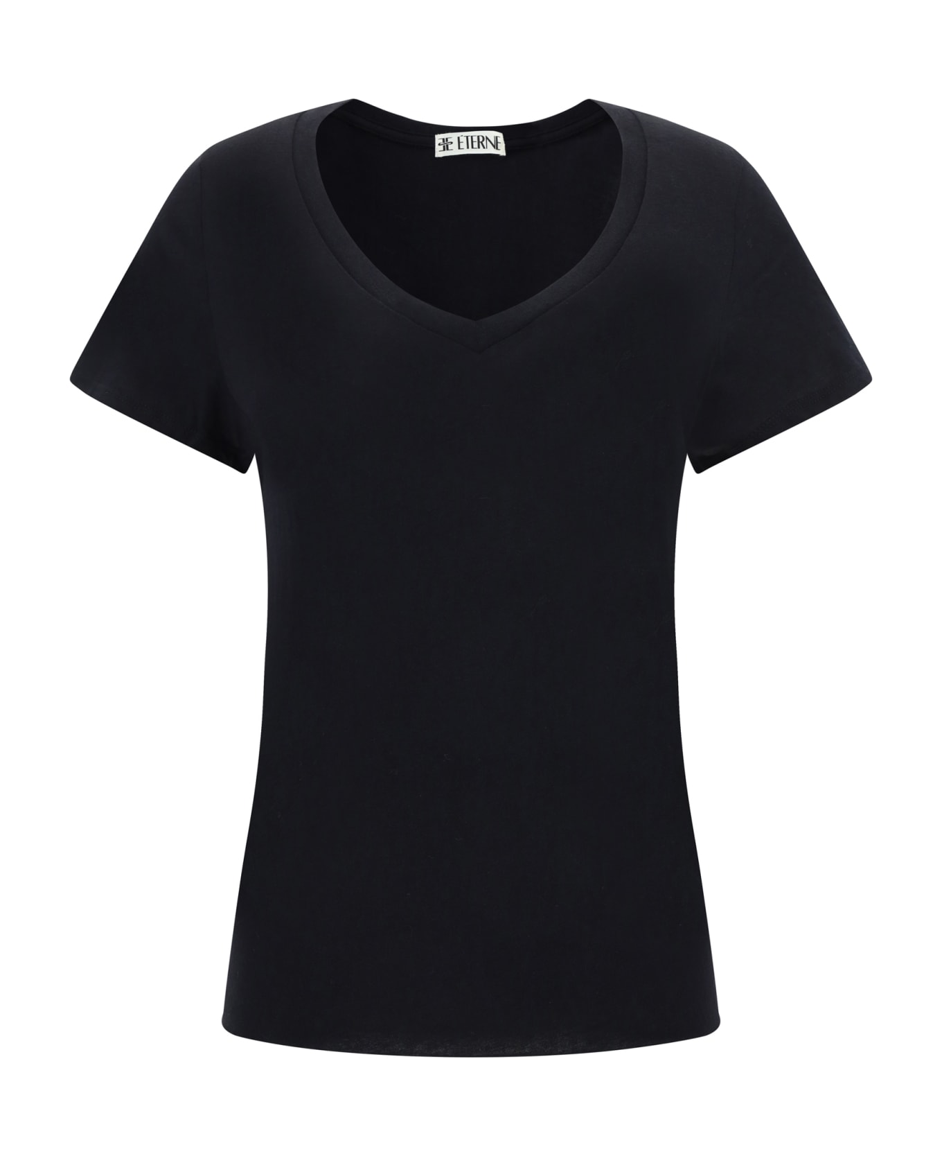 Cotton t-shirt by Éterne, v-neck on ribbed front, scooped hem, monochrome pattern, regular fit.