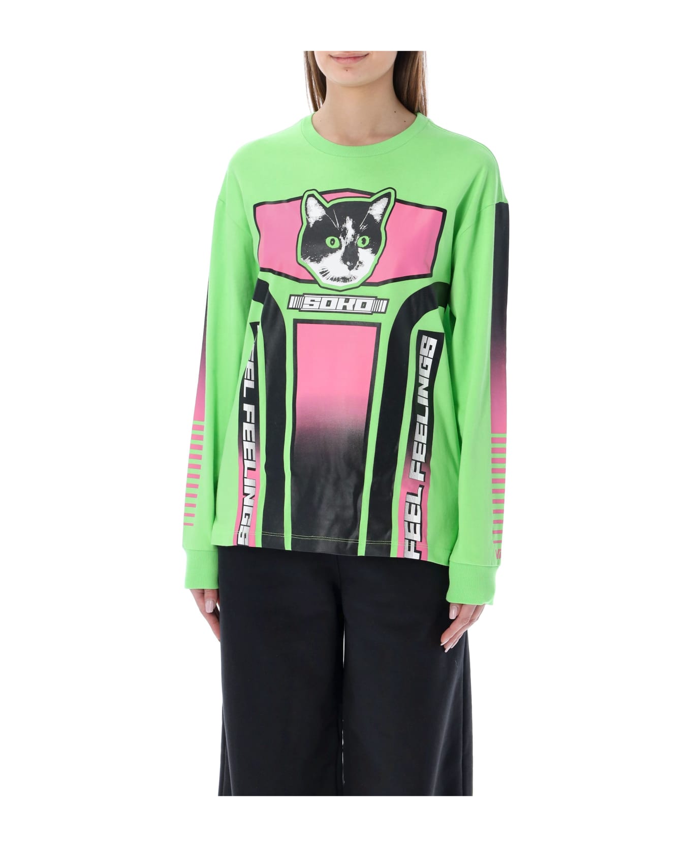 Green Cotton X Sarah Andelman Soko Linski T-shirt By Vans. Featuring: - Ribbed Crew Neck - Long Sleeves - Ribbed Cuffs - Multicolor Graphic Print All-over - Relaxed Fit - Straight Hem
