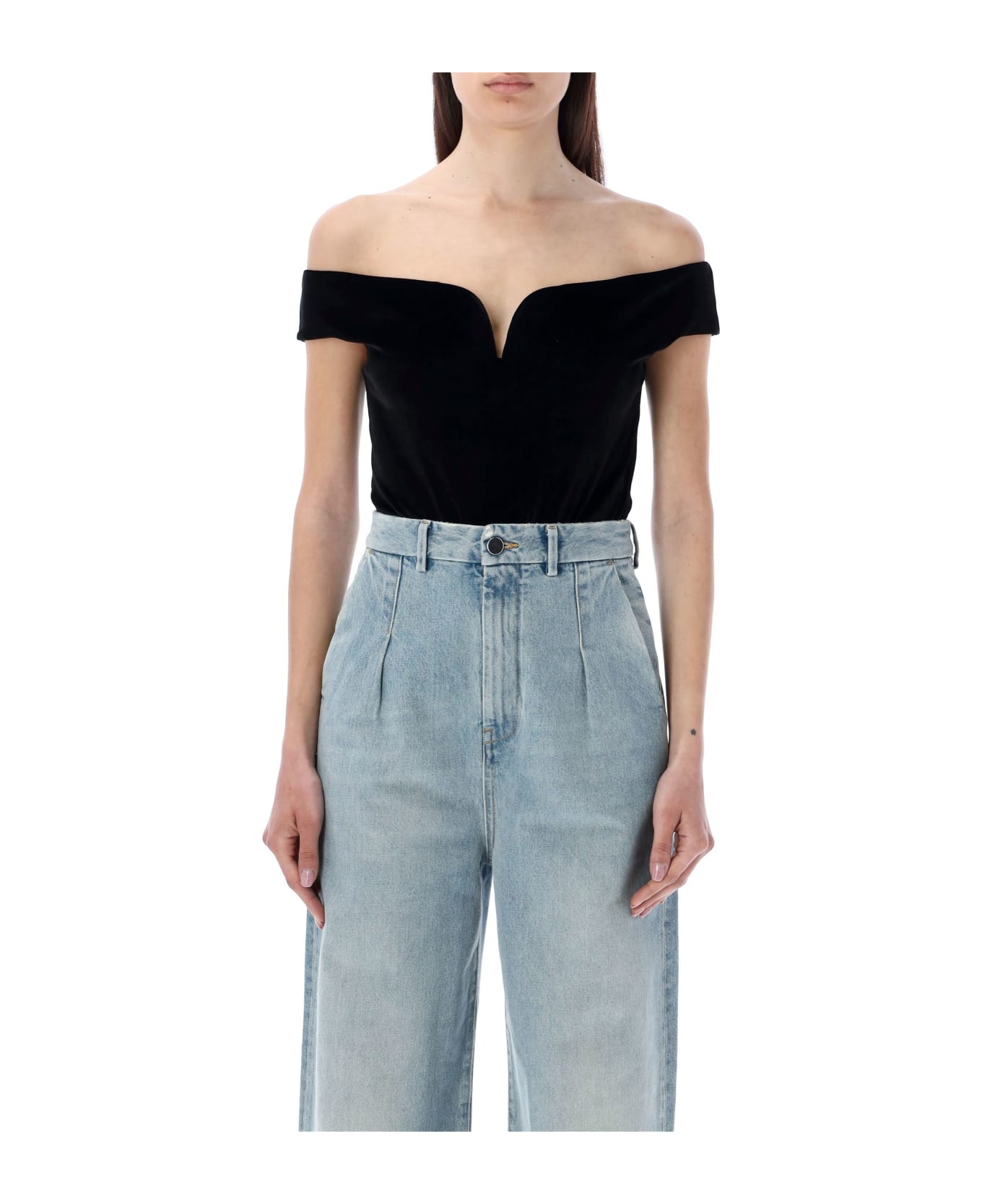 Stretch Velvet Gesa Bodysuit By Nanushka. Featuring: