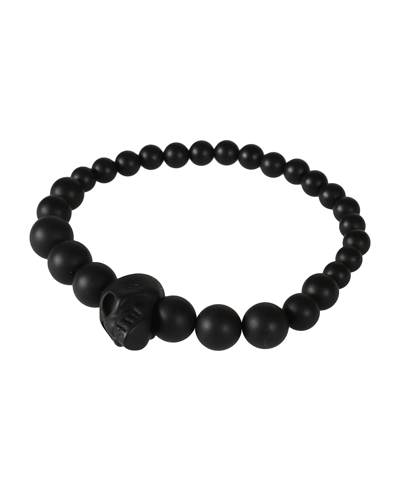 Black resin skull beaded bracelet from Alexander McQueen featuring skull stud detailing and bead detailing.