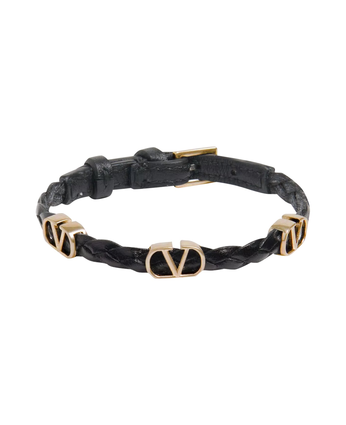 Valentino Garavani black Vlogo Signature leather bracelet, buckle closure, Vlogo signature charm allover Composition: 100% Calf Leather /, 100% Metal