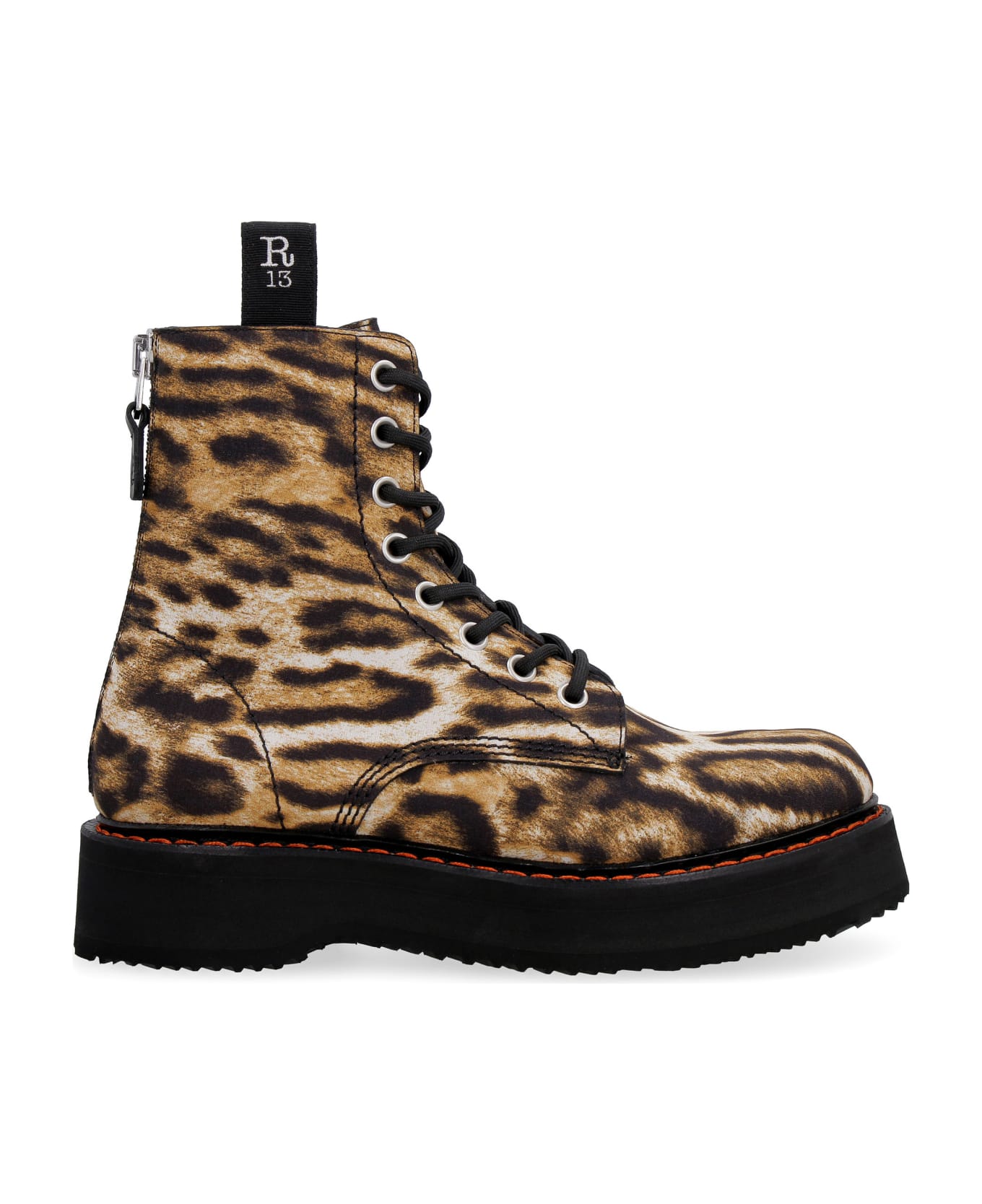 Leopard print motif Round toeline Platform: 4 cm Back zip closure 100% Rubber, 100% Viscose, 100% Leather