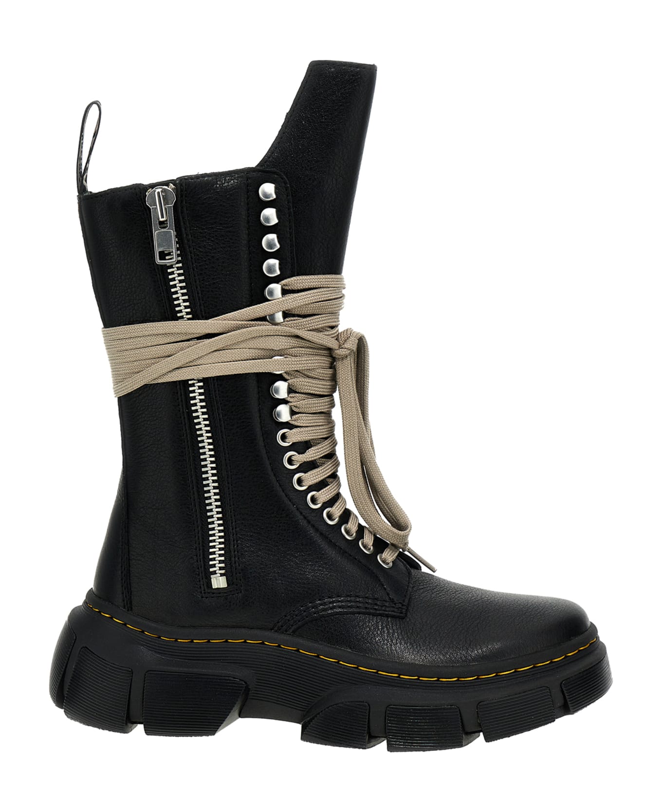 Rick Owens x Dr. Martens '1918 DMXL Calf Length Boot' leather boots, side zip and lace-up closure, rubber sole.