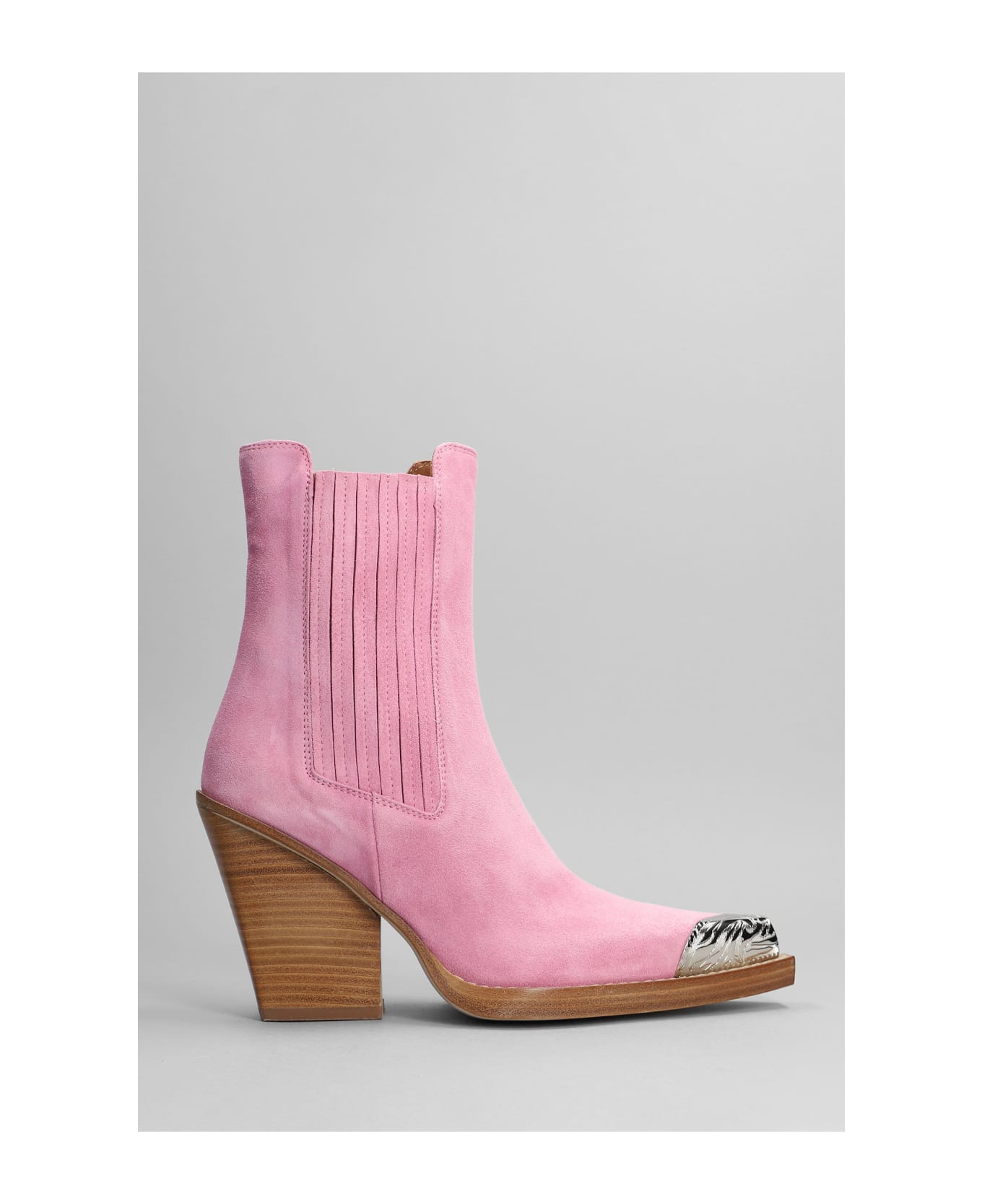 texan Ankle boots in rose-pink suede, pointed toe, side elastic band, metal toe, 100 mm heel, leather sole, 100% suede, Made in Italy