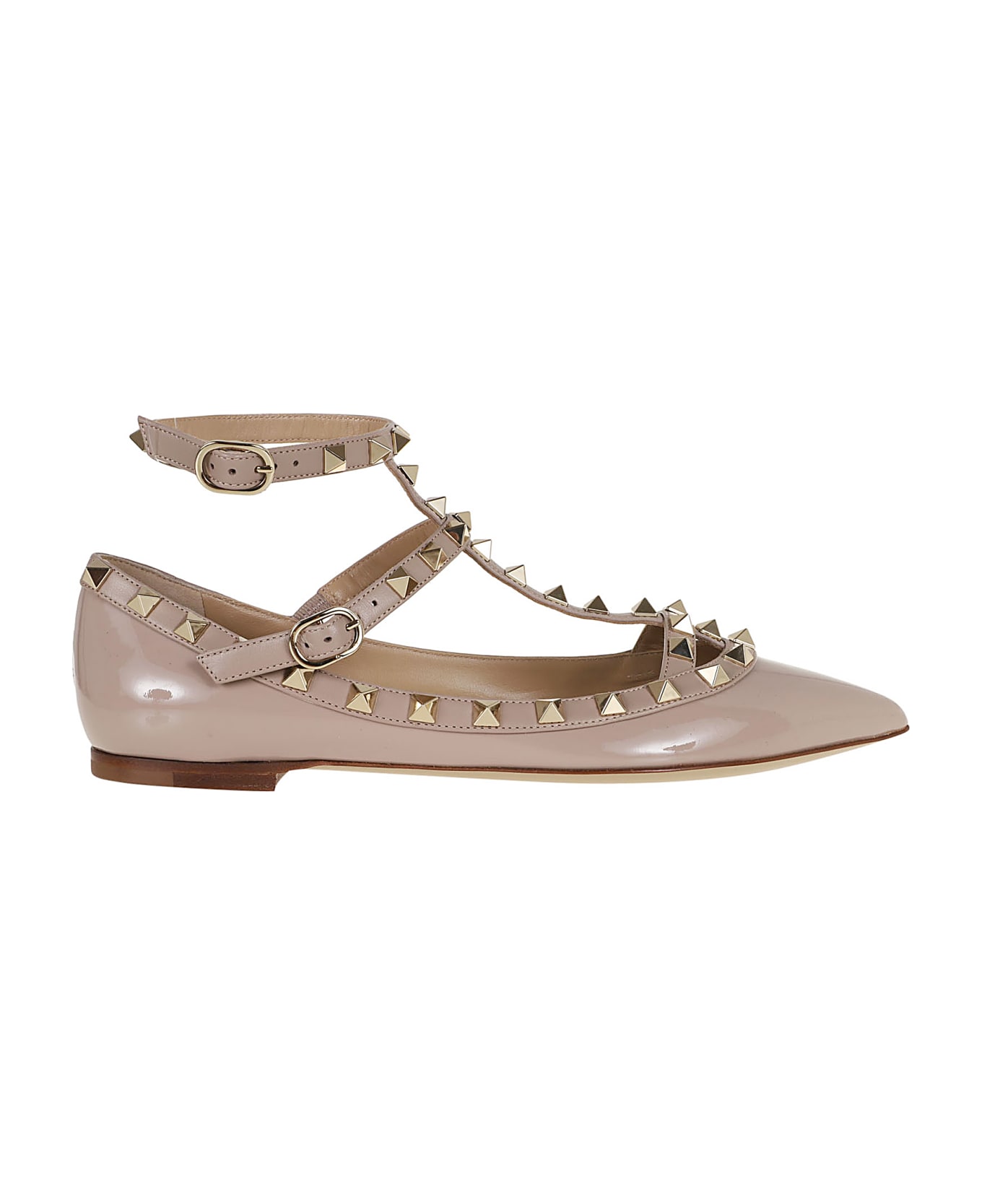 VALENTINO GARAVANI Rockstud ballerina in patent leather. Adjustable contrasting straps featuring studs. A true must of the brand, present in all collections with the leather and color variant. An item that absolutely cannot be missing from a woman`s wardrobe, ideal to be worn both for a casual outfit with jeans and with a dress for a more elegant and feminine outfit.
