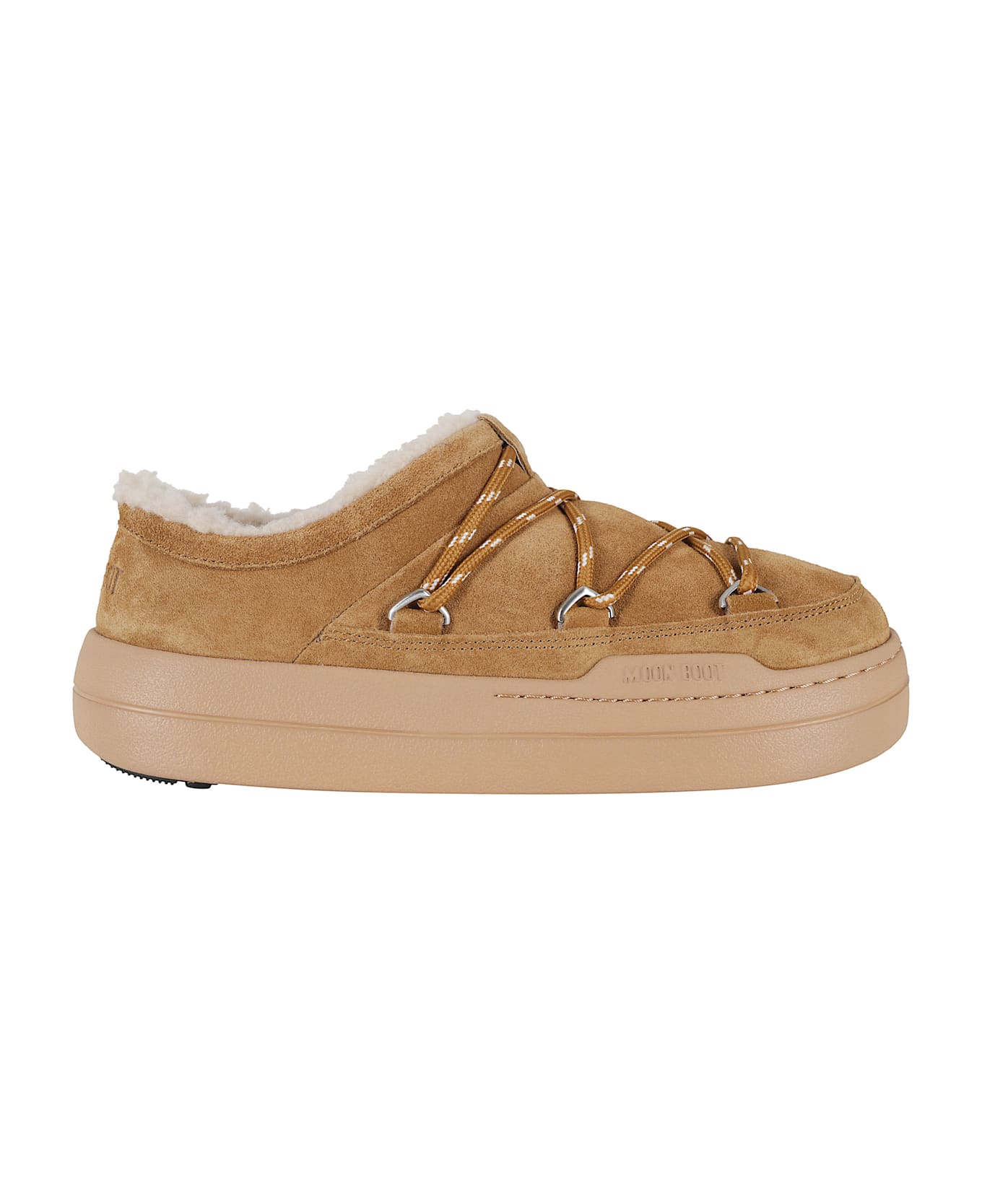 Slipper Park - Moon Boot - cognac color - suede upper - EVA sole - crisscross tubular laces - metal eyelets - shearling interior - imprinted logo