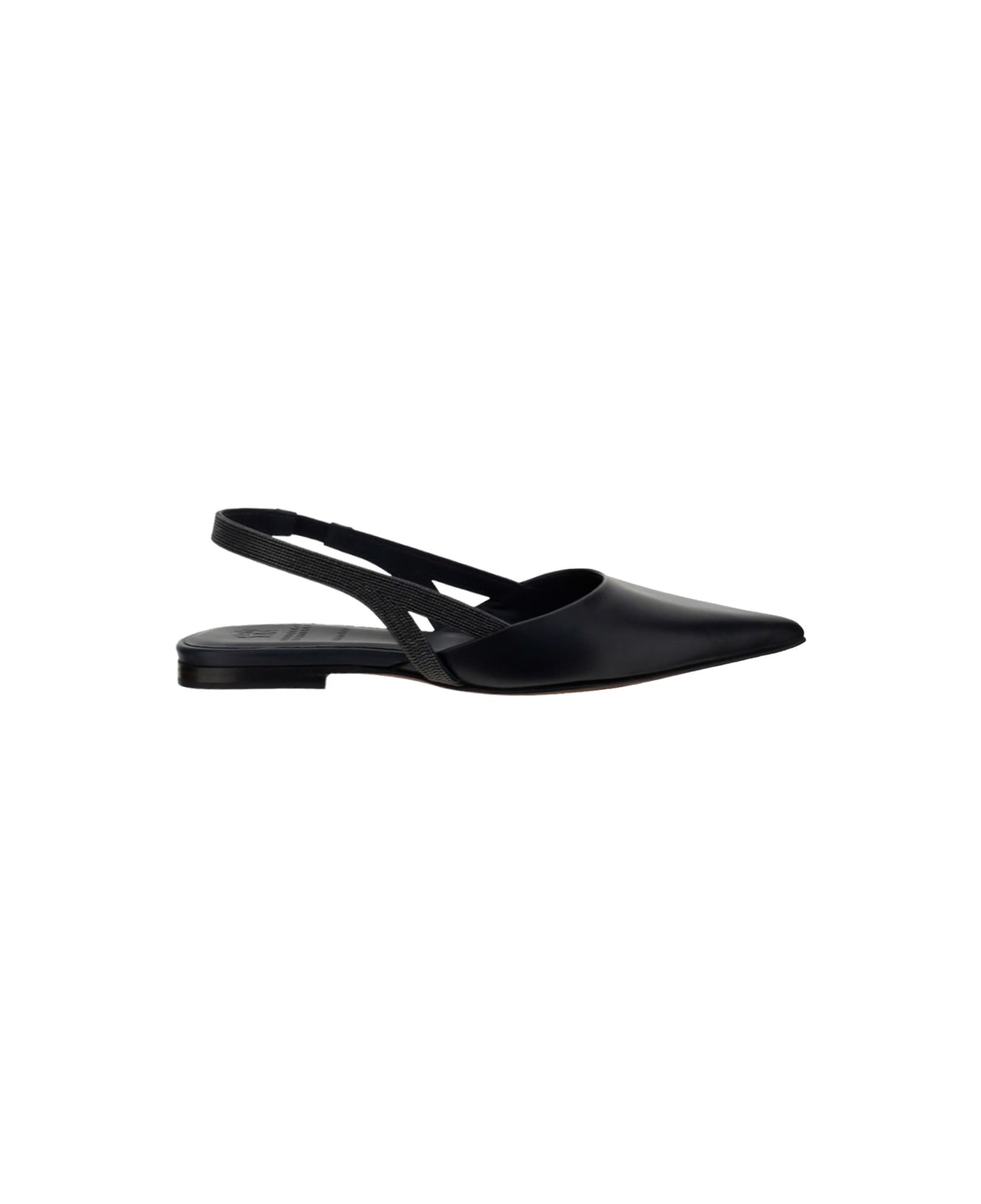 Calfskin sandals by brunello cucinelli, elongated toe, flat sole with slight leather heel, elasticized back heel strap, logo-embossed insole. Composition: 100% % Calf Leather Bos Taurus, 100% % Calf Leather Bos Taurus Composition: 100 Af