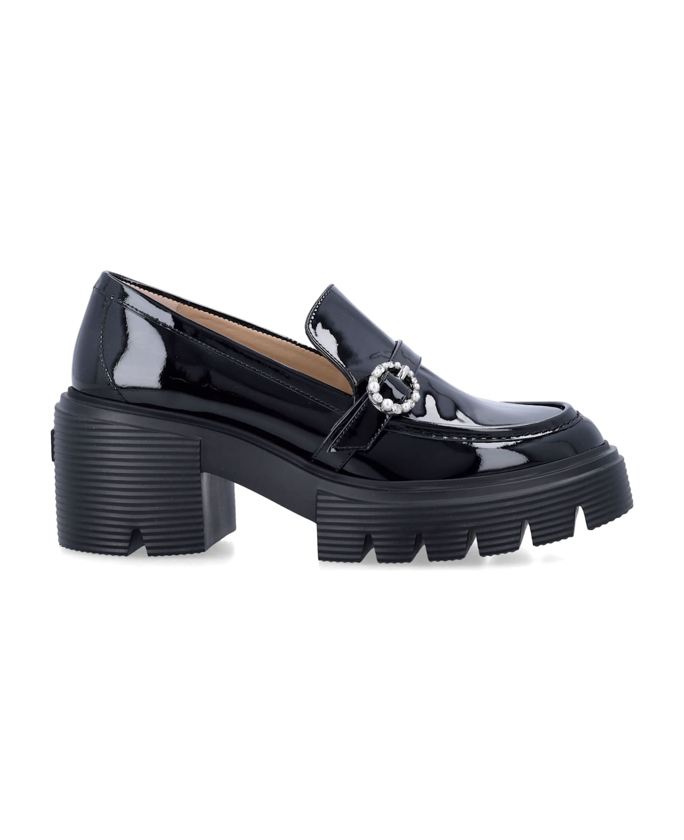 Soho Leighton Loafer By Stuart Weitzman. Featuring: Patent Leather Upper Crystal- And Pearl-embellished Buckle Downtown-inspired Lug Sole Block Heel Heel: 6 Cm