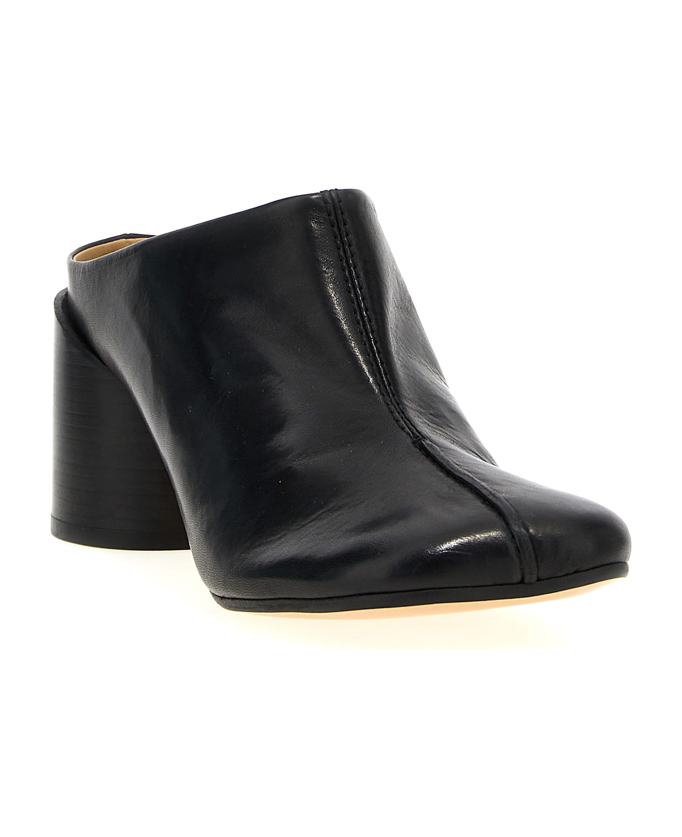 'Anatomic' sabots in vintage soft solid colour leather with shaped toe cap and chunky heel, 'White stitch line' at the back. Composition: 100% leather