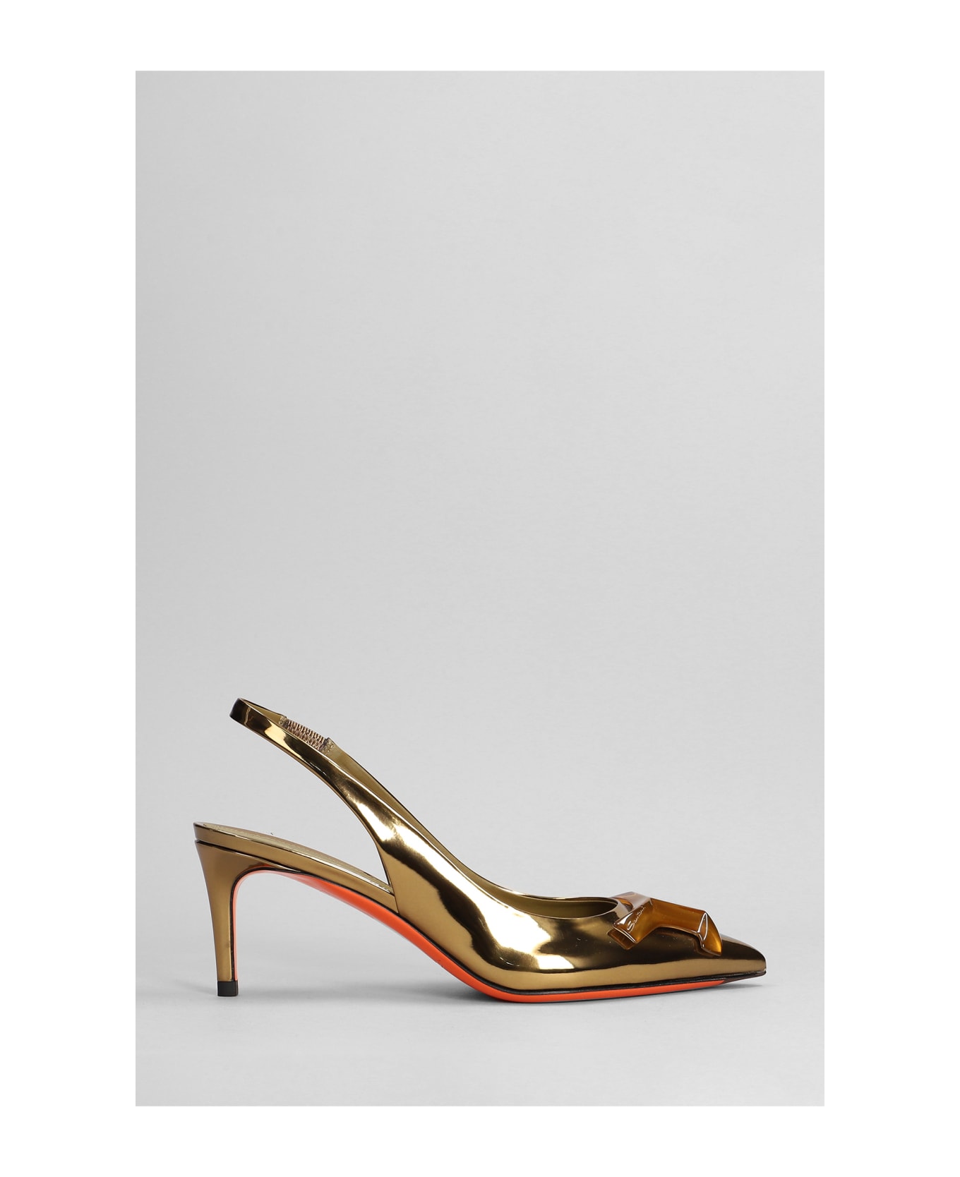 Gemmy Pumps in bronze leather, sling back, metal effetc, heel 75mm, leather sole, 100% leather