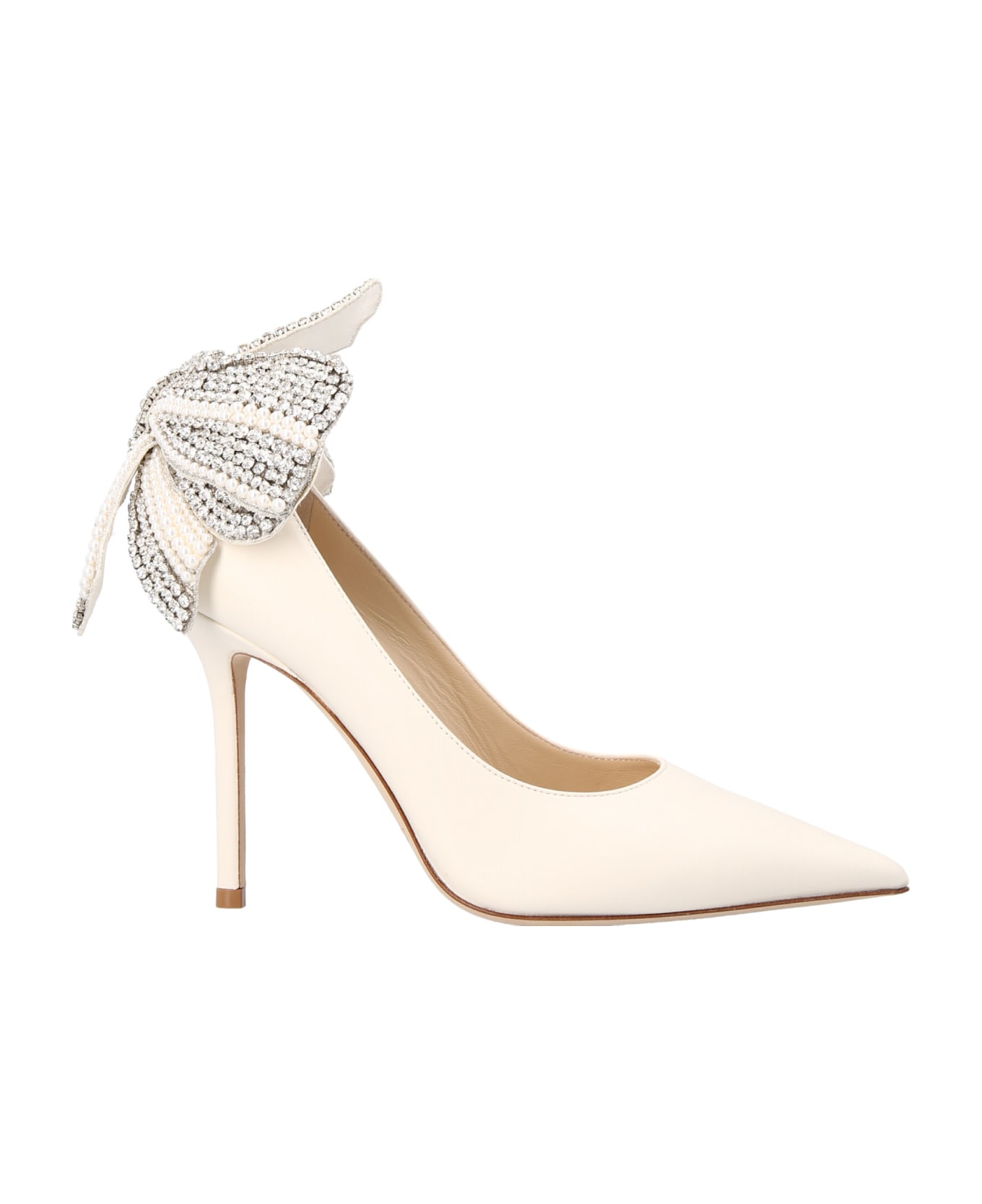 'Love' nappa pumps with jewel bow detail at the back, pointed toe, stiletto heel. nd a stiletto heel. Composition: 90% lamb leather 10% textile