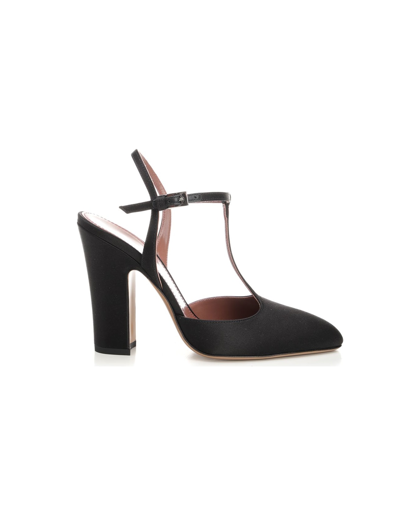 "Lavinia" pumps with adjustable T-strap at the ankle in black satin by Paris Texas. Composition: UPPER VI 72% SE 28% LINING 100% OVIS ARIES SOLE 100% CALF