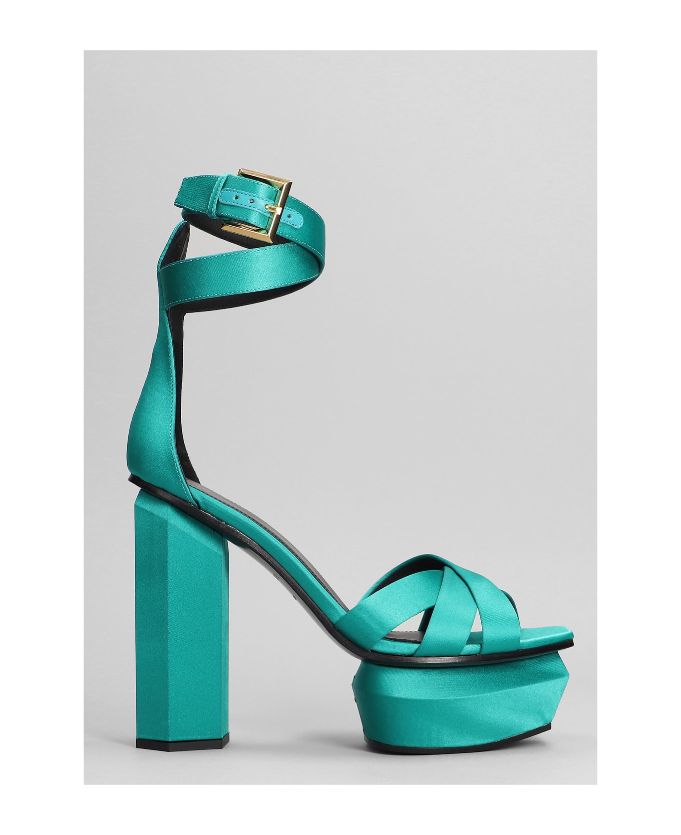 Ava Sandals in green satin, cross straps, ankle strap, plateau, 135 mm heel, plateau 5cm, 100% satin, Made in Italy