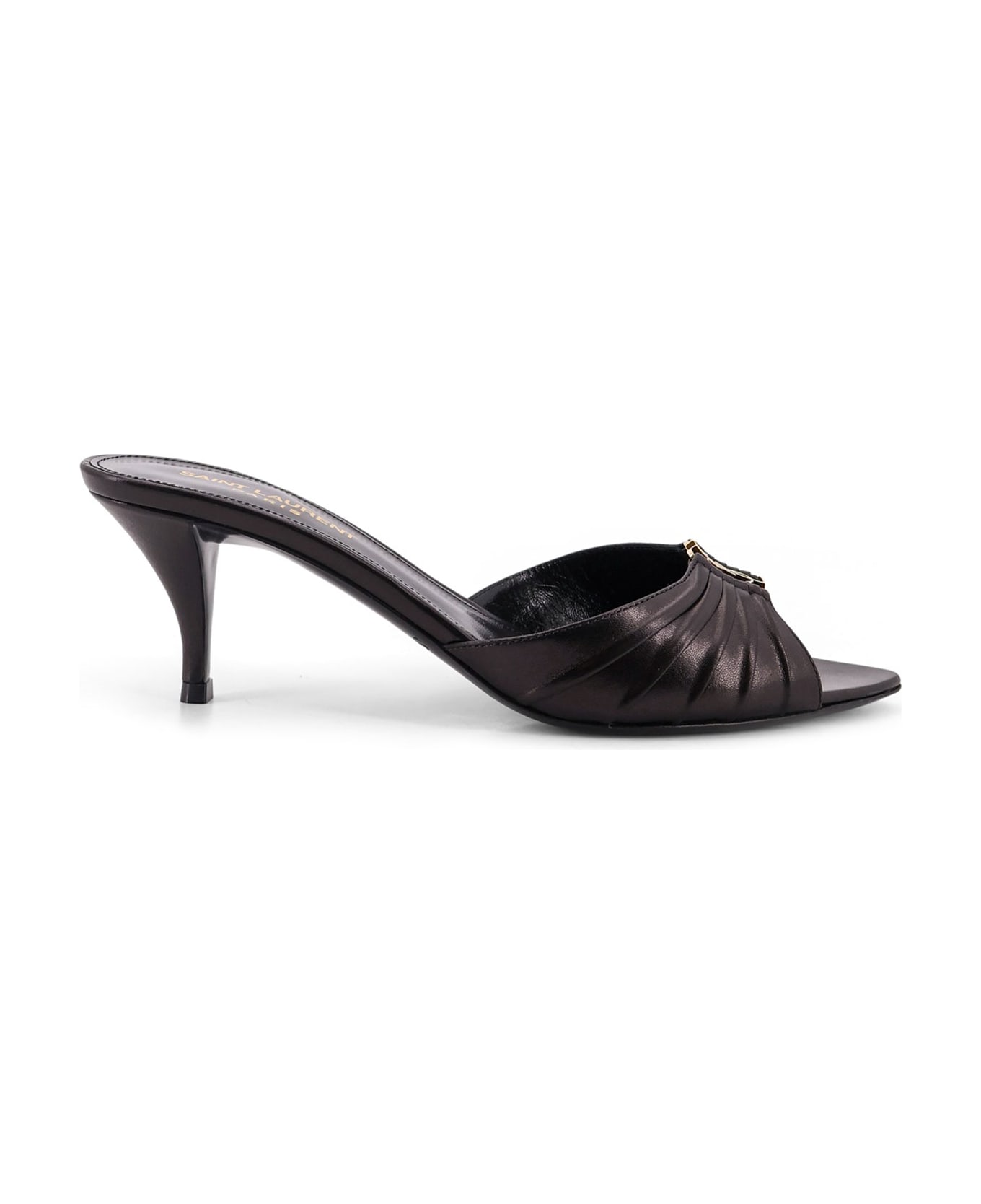 Pointed toe Metal Cassandre logo Ruffled detail Covered heel Leather sole Made in Italy Leather Heel height: 6 cm SKU: 861121AAF2R1000