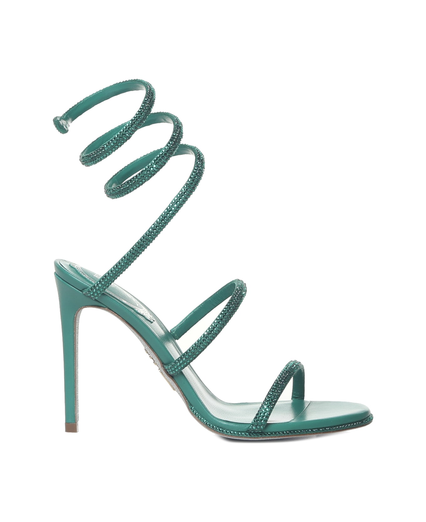 Green satin Cleo Sandals With Crystals from René Caovilla