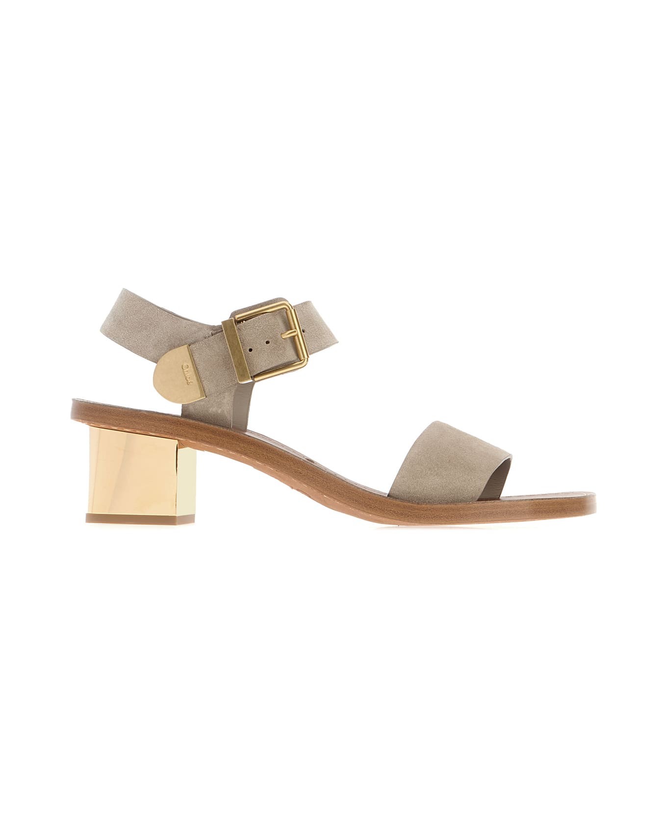 Sandals realized in suede enriched by logoed buckle. -Round toe -Adjustable ankle strap closure -Thick heel -Embossed logo on the interior Composition: Exterior: 100% Suede Interior: 100% Leather Sole: Leather