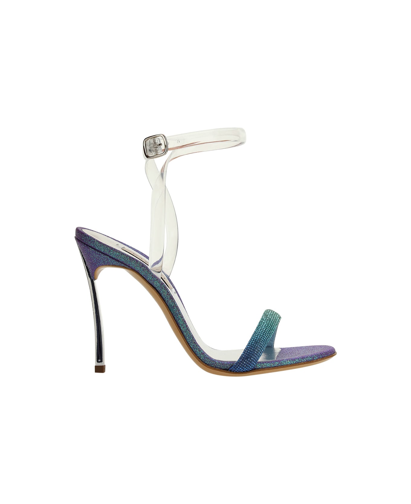 Calfskin hollywood sandals by casadei, front band covered with matching rhinestones, adjustable transparent ankle strap, stiletto leather heel, logoed insole. Composition: 100% % Calf Leather Bos Taurus, 100% % Calf Leather Bos Taurus