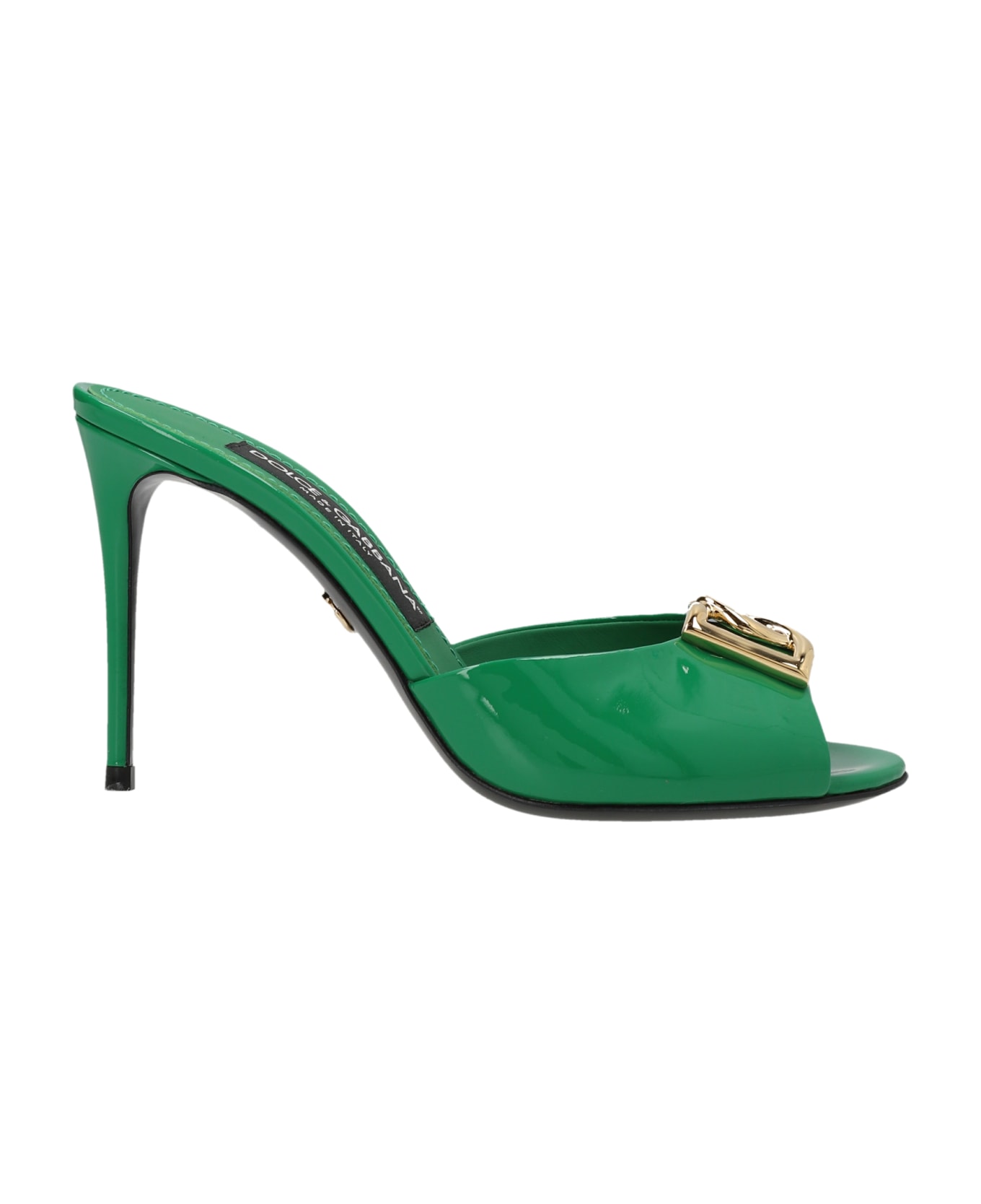 Painted leather mules, with front metal logo appliqué, stiletto heels. Composition: 100% calfskin leather (Bos Taurus)