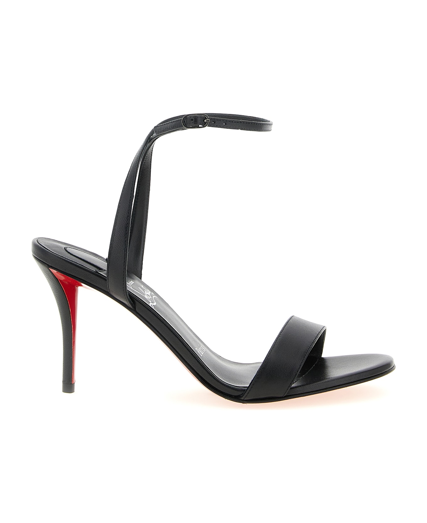 'Miss Z' nappa sandals with adjustable ankle strap, rounded toe, heel, 'Everlasting Red' sole.