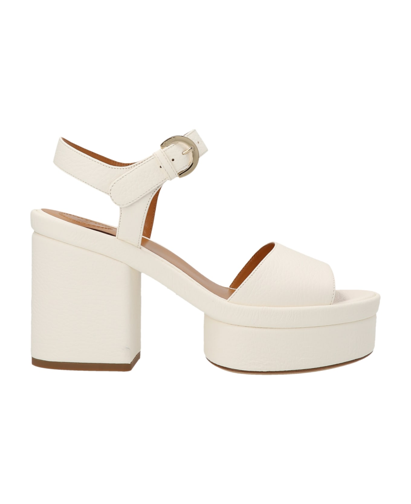 Odina' grainy leather sandals with plateau and an ankle strap. Composition: 100% deer leather. (cervus ela)