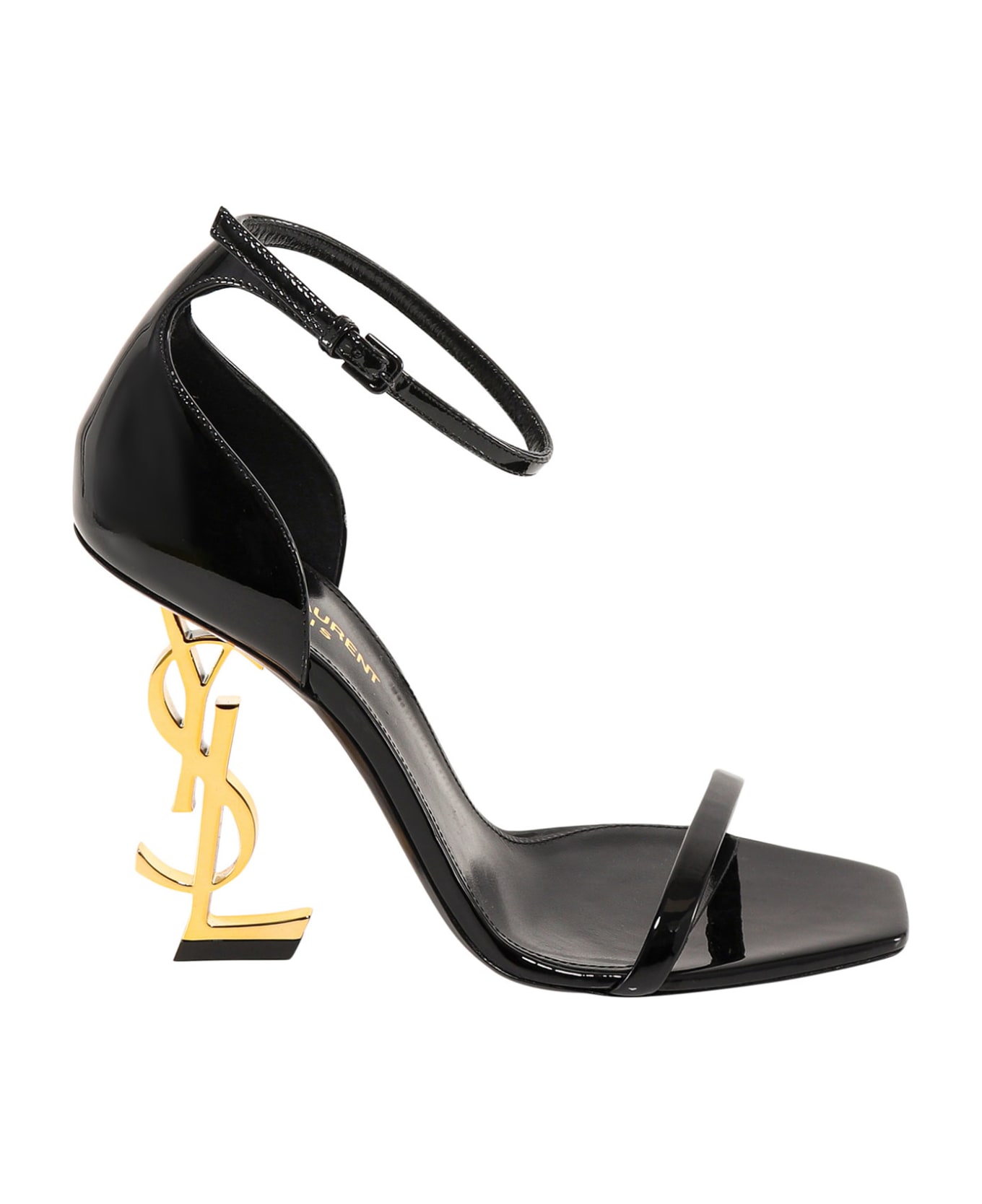 - Adjustable Ankle Strap - Squared Toe - Heel With Metal Monogram - Made In Italy - Leather - External : Leather
