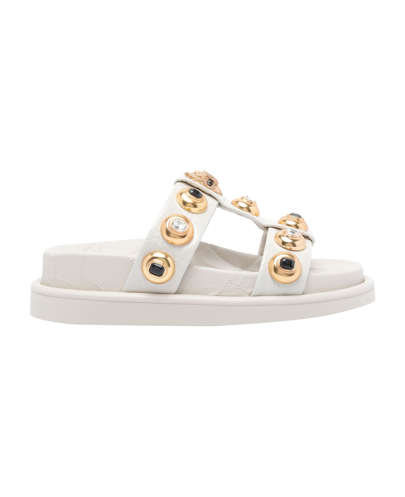 Kurt Geiger white Orson Multi Stud casual sandals, round toe, leather upper, studs allover