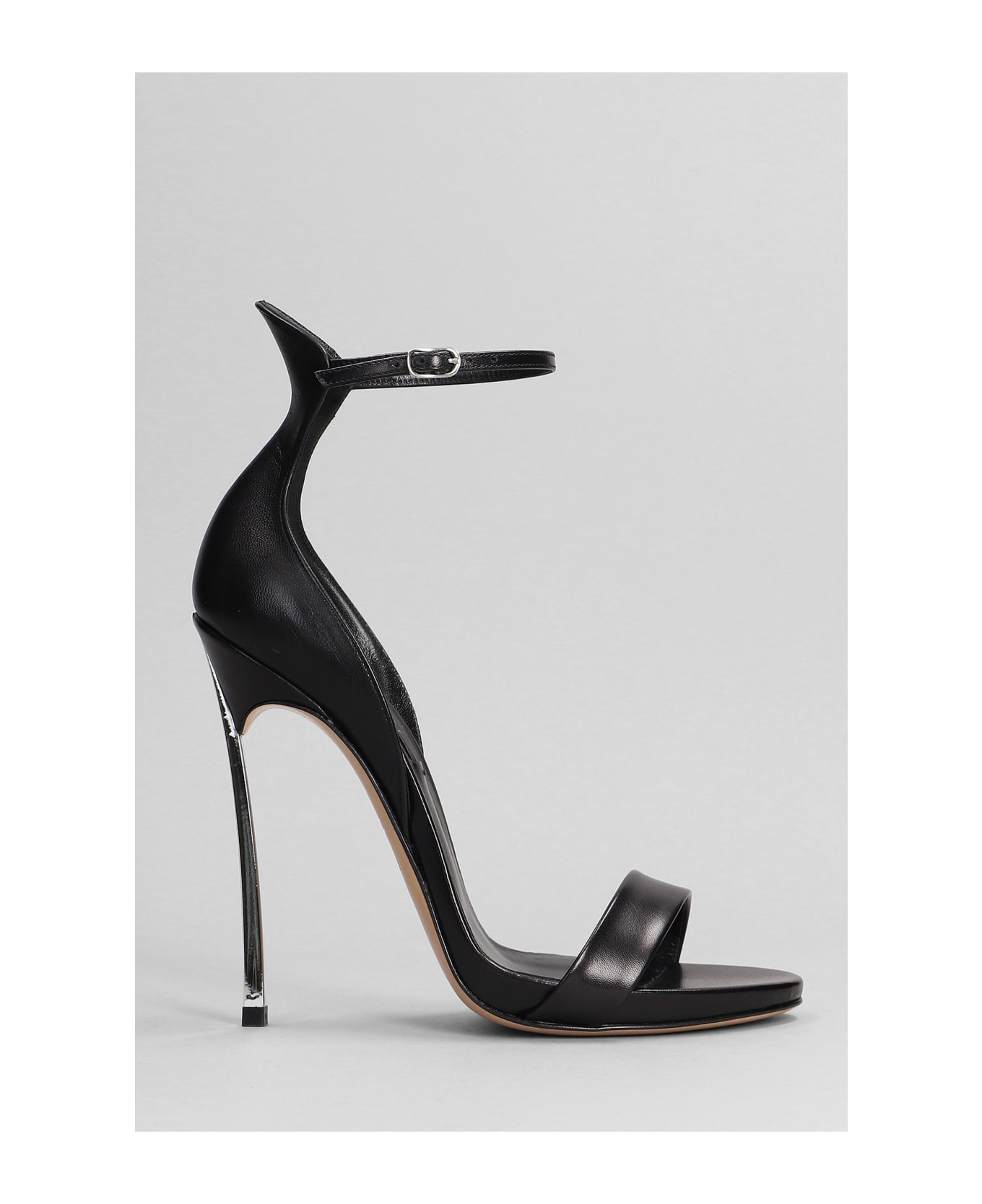 Sandals in black leather, ankle strap, one strap, blade heel, 125 mm heel, Made in Italy, leather sole